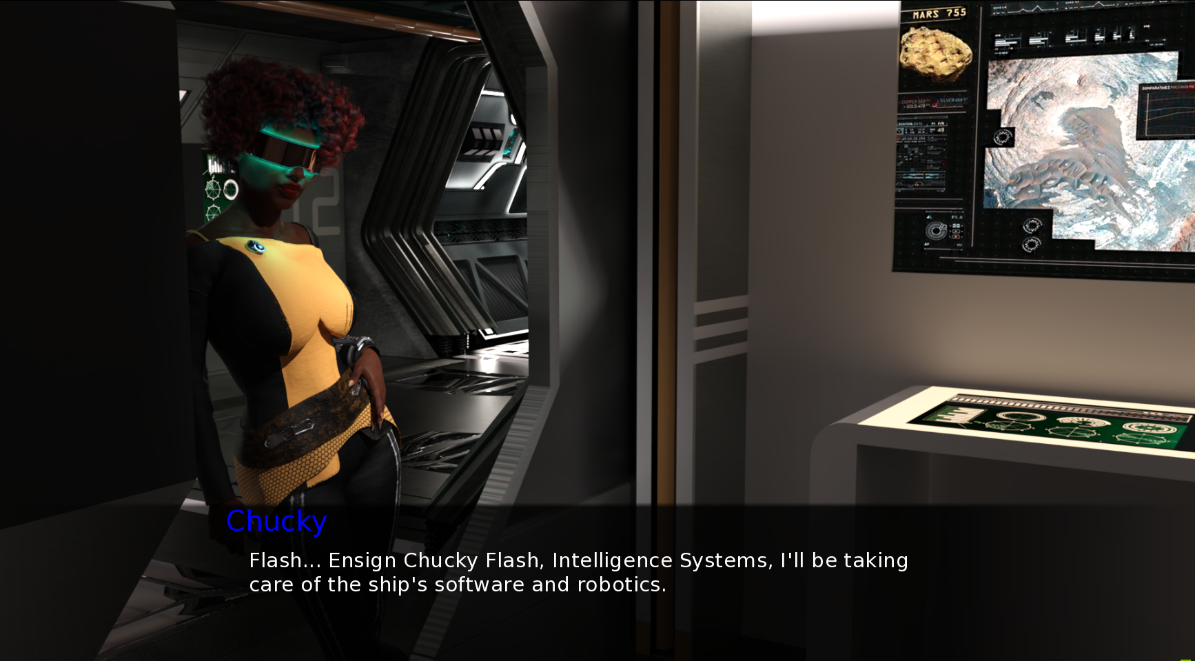 Note to devs: Really enjoying what’s here overall. I guess it would be difficult to tone down the dom stuff, particularly retroactively, but it would be nice if we could have bit more leeway as players to avoid or lessen it through choices. I had seen this a few times in the latest updates but avoided it due to my ad version to over the top parodies. However, lacking anything else I decided to give it a go and I’m so glad I did. While it is a parody it isn’t over the top, it’s more in the vein of Red and Red2. It’s a parody but only a lite comedy. The characters all are immersive and serious in their world. It pulls on many elements across Sci-Fi very well and I genuinely enjoyed the writing and story.