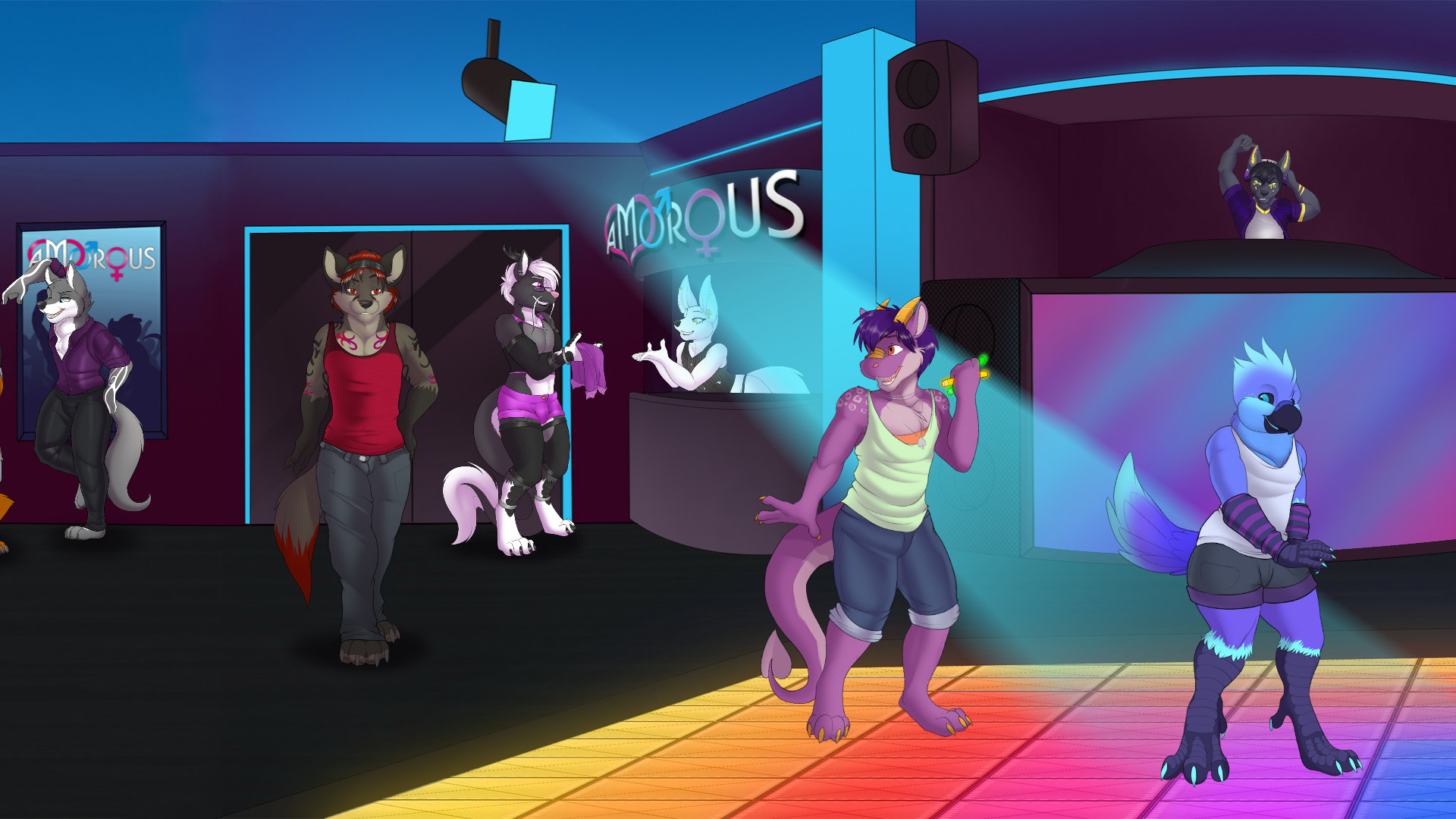 Explore the dazzling neon lights of Amorous. A bustling furry night club that attracts all species, personalities and sexualities. Create your own character and find all 9 datable characters! Amorous is a furry dating simulator which aims to provide a high quality graphic novel experience for free. Shake up the formula with animated NPCs, sandbox environments, real choices and interactive mini-games to keep you engaged. Avoid the normal pitfalls of dating games with an incredibly varied roster. Ranging from foxes to felines, male to female and everything in-between. No catch! No depleting in-game currency every time you attempt to date a character, no in-game shop prompting you to buy more parts for your character. It’s all there for you to enjoy for free. This game has seen many years of spare-time development, and all of it wouldn’t have been possible without the support of our loyal Patrons.