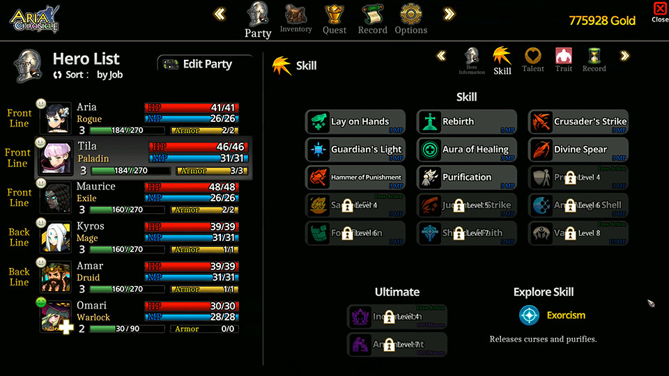 Princess Aria of the Kingdom of Tamageria visits the small countryside village of Latebra, while on her Pilgrimage of the Rite of Succession. It is here that Princess Aria is dragged into the struggle with the mysterious organization known as “The Cult,” from which she is to discover the shocking truth hidden in the depths… Princess Aria, who, contrary to her innocent and charming appearance, possesses a dauntless heart, is only one of all the captivating characters that appear in this game.Be prepared to be drawn into the elaborate artwork, not just of the heroes, but of the monsters you will encounter throughout the game. Strategic turn-based battles… Enjoy the strategic battles which will surely keep you on your toes. An important aspect of this game is the management of each hero’s mentality, which will greatly affect their performance in battle. Be sure to keep alert to the progress of battle, so that you can fully utilize the capabilities of your entire party.