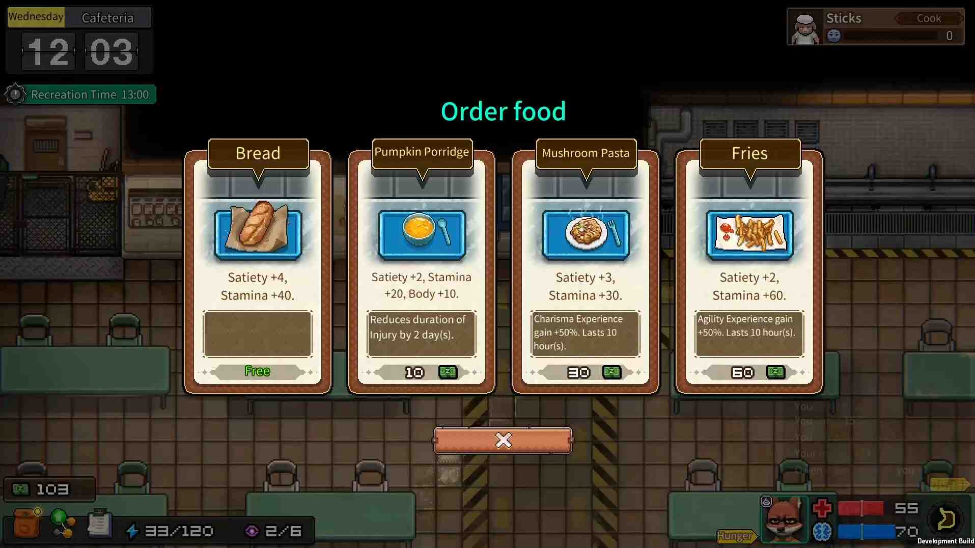 But will you be a model prisoner and just try to keep your head down, or will you leave a trail of chaos and destruction in your wake? It’s all up to you. There is a colorful cast of fellow inmates in your prison, each with an interesting story to tell. You can either make them your friends or fight, bully and rob them into submission. Decide too if you want to be part of a gang or a cunning lone wolf who maneuver your way around everybody. It’s tough, but hey, you are in prison! Are you a tough guy who lets his fists do the talking, a thief who hides in the shadows, or perhaps a smooth talker with some nifty hacking skills? You can be whoever you want to be in this game. Learn all kinds of skills, craft tools of various trades and go from being ‘new fish’ to ‘top dog’!