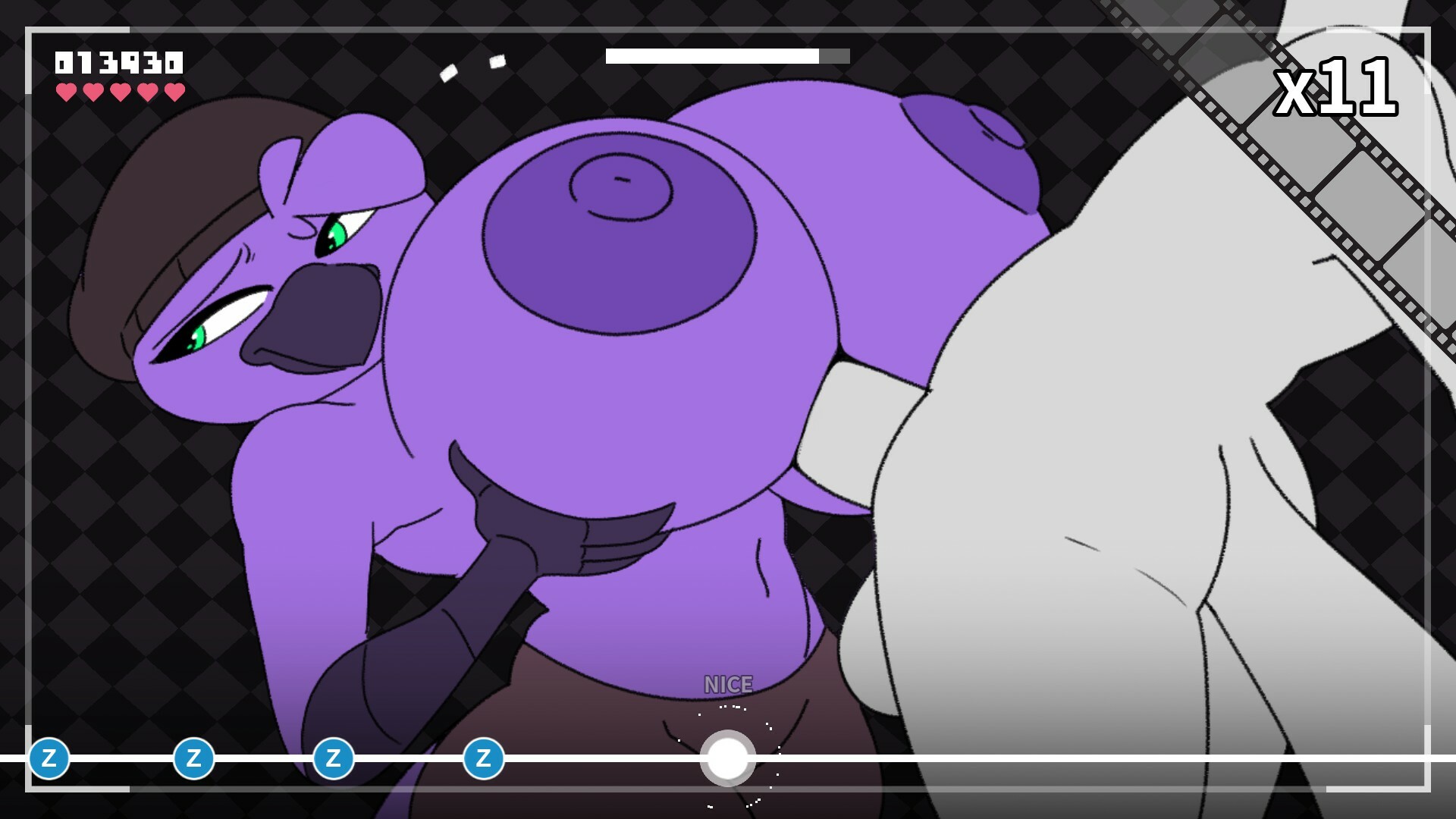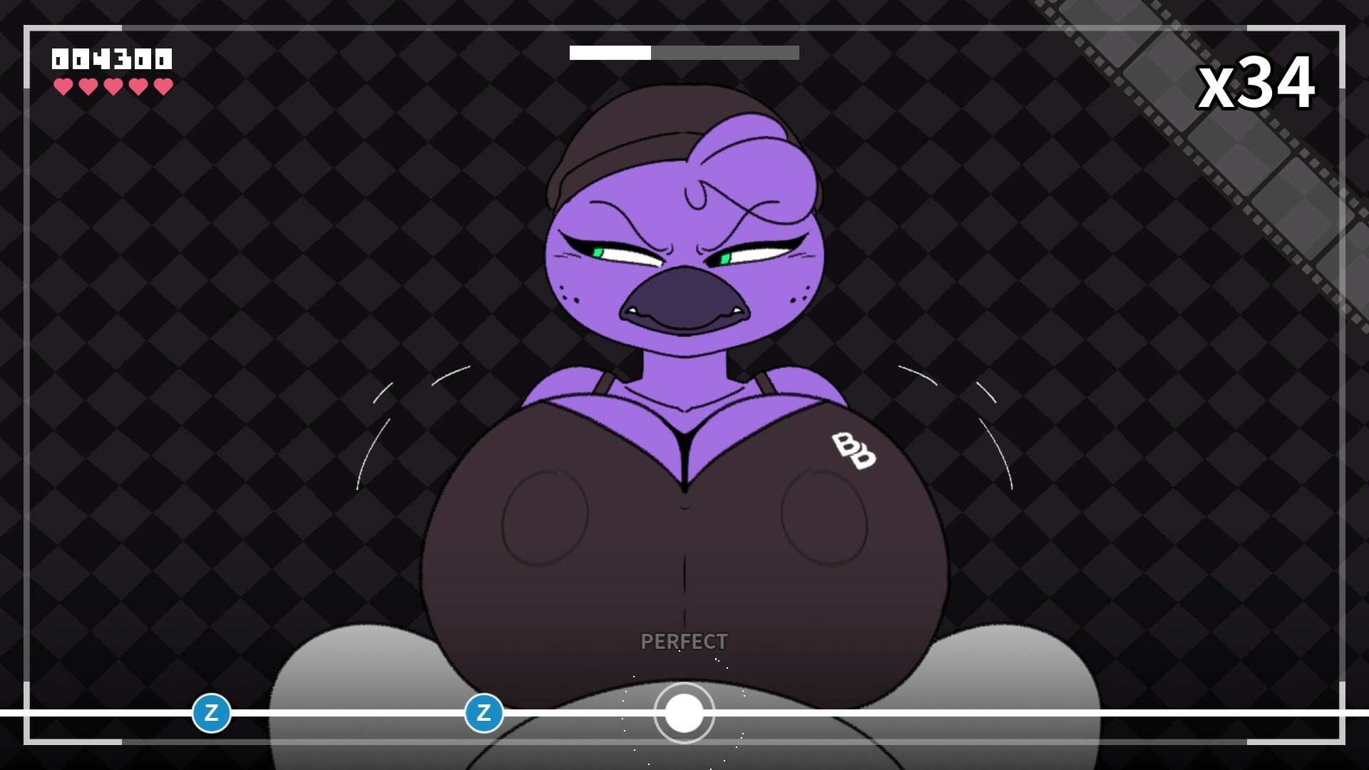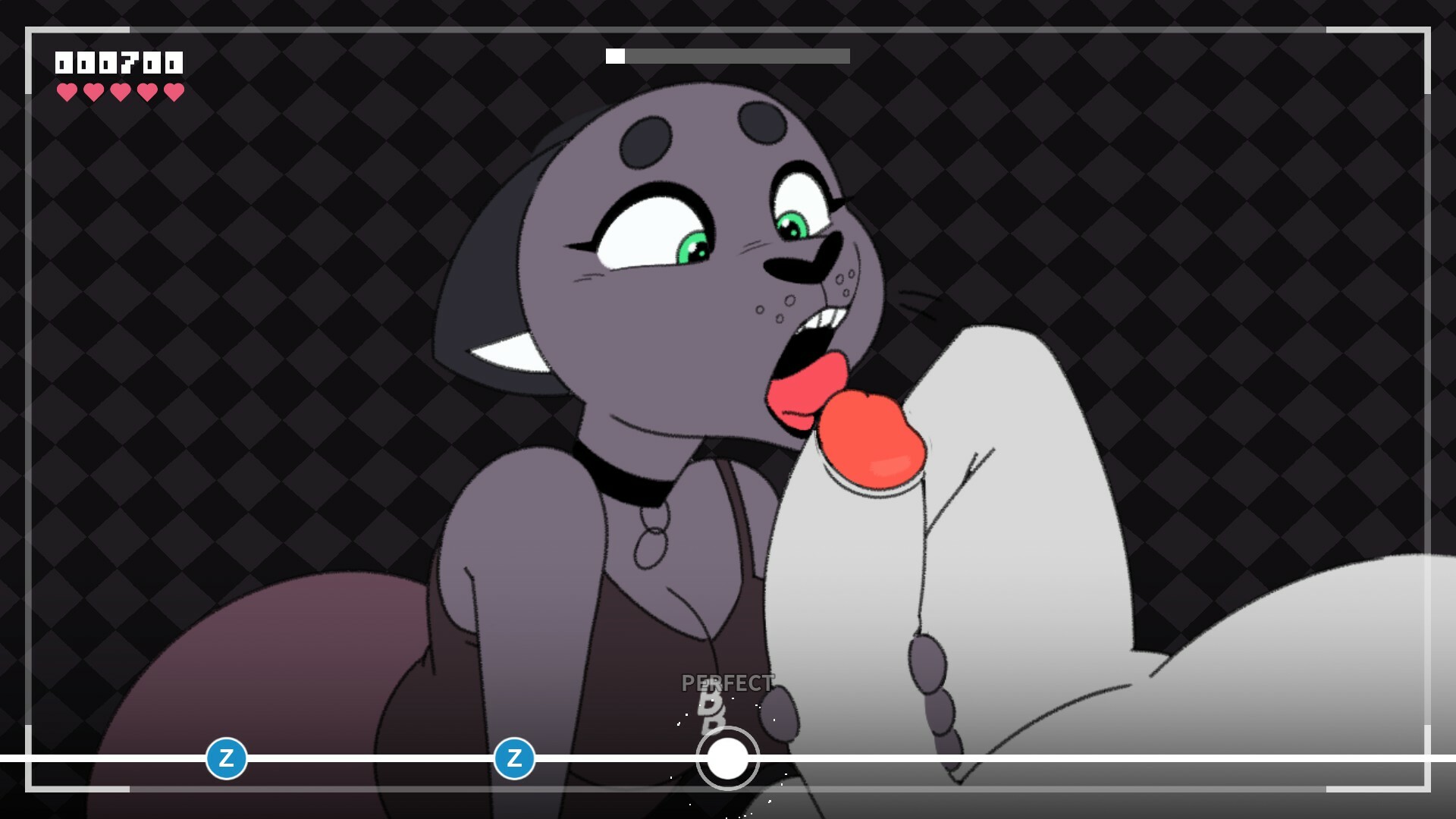 Beat Banger is a mature furry rhythm game. You are the lone protagonist in a rags-to-bitches story. Work your way to the top of Beat Banger Studios, a small and rhythmic porn production company in desperate need of some assistance. You apply for a simple production job, but it seems the CEO has another position in mind for you. Jump in now, you won’t want to miss a beat. In the current version of the game only two levels are available; “Virgin Newbie” and “She Doesn’t Like You”. More levels will be added in future versions of the game. The Available stages in this version of Beat Banger are rhythm games, which reward timing, accuracy, and consistency. The beats within stages represent the “thrusts” your character performs. Doing well in specific sections of the level may reward you with alternate versions of the animations.