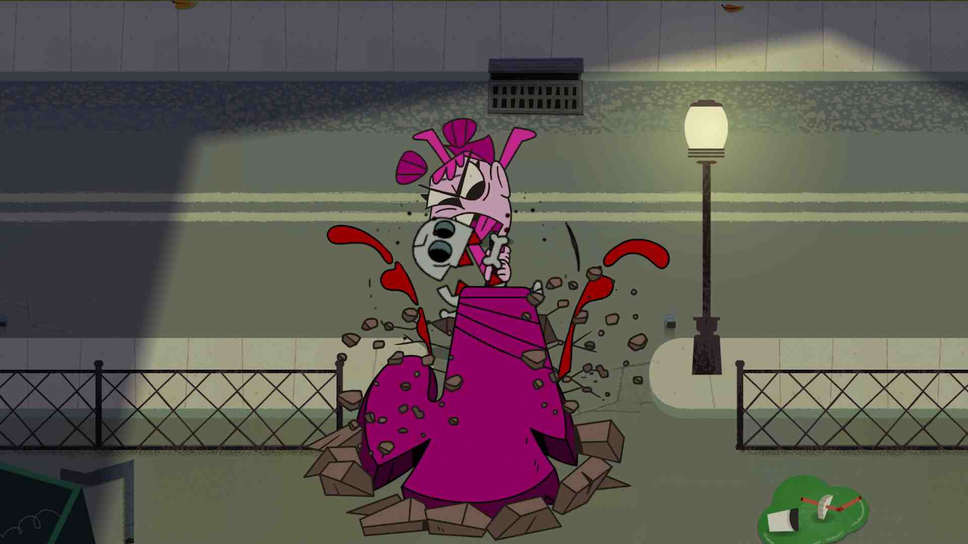 #BLUD is brought to life by Exit 73 Studios, a team of creators with a passion for traditional hand-drawn 2D illustration and animation, the joyous and jubilant cartoons of the modern era, and game development. For me, the highlight of this game is how different the boss fights are. In some, you’ll walk and dodge around and hit the boss with your hockey stick, but in others, you are on vehicles and fight them in a different way. Sometimes it took a bit of trial and error to figure out how to damage a boss. Most of the time when I struggled at the start was in fights where you couldn’t use brute force, but had to defend for a little to create an opening to attack. That is all on me, I’m more the kind of girl who keeps attacking in games and doesn’t defend.