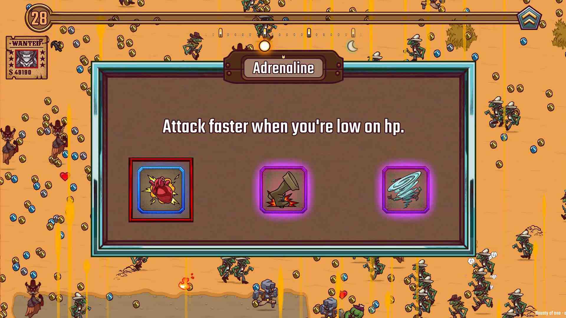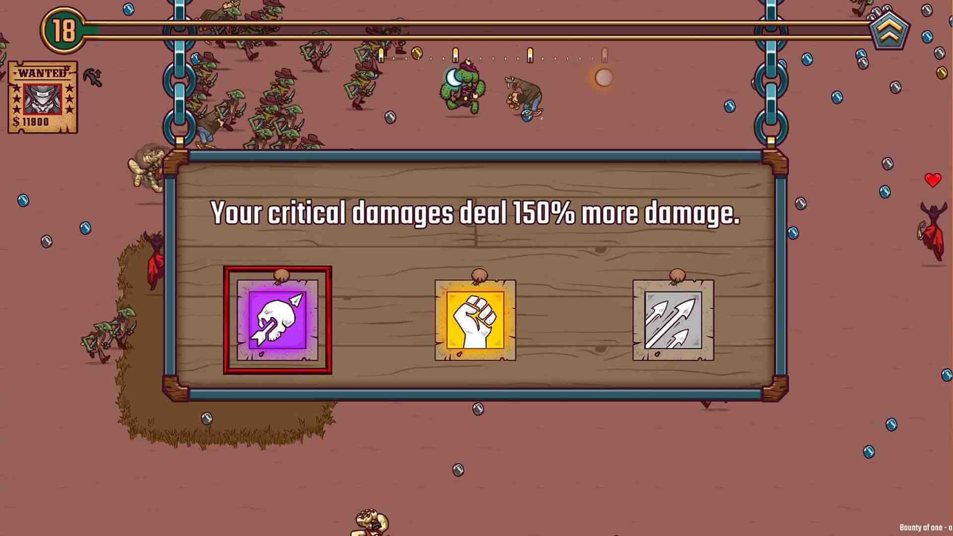 Once, you were a legend of the Western Kingdoms, but you were betrayed and fell into disgrace. Now you and your crew are outlaws. A bounty has been wrongfully placed over your head and countless hordes of bounty hunters are coming for you! Will you be able to survive? Will you be able to clear your name? Bounty Of One is a fast-paced casual roguelite bullet hell where mobility is key. Play solo or with your friends up to four players on the same screen or remotely with ‘Steam Play Together.’ Play with a keyboard or a gamepad. Alone or with your crew, defeat endless waves of bounty hunters Upgrade your skills as fast as possible to survive ever-stronger waves of enemies. Collaborate with your friends and split the loot smartly (or argue about it yek yek)! Resist and more will come for you! But you are well prepared and you will show no mercy! Fight your way through the sheriffs and deputies serving the evil Undertaker. Find your nemesis, beat him and make him pay!
