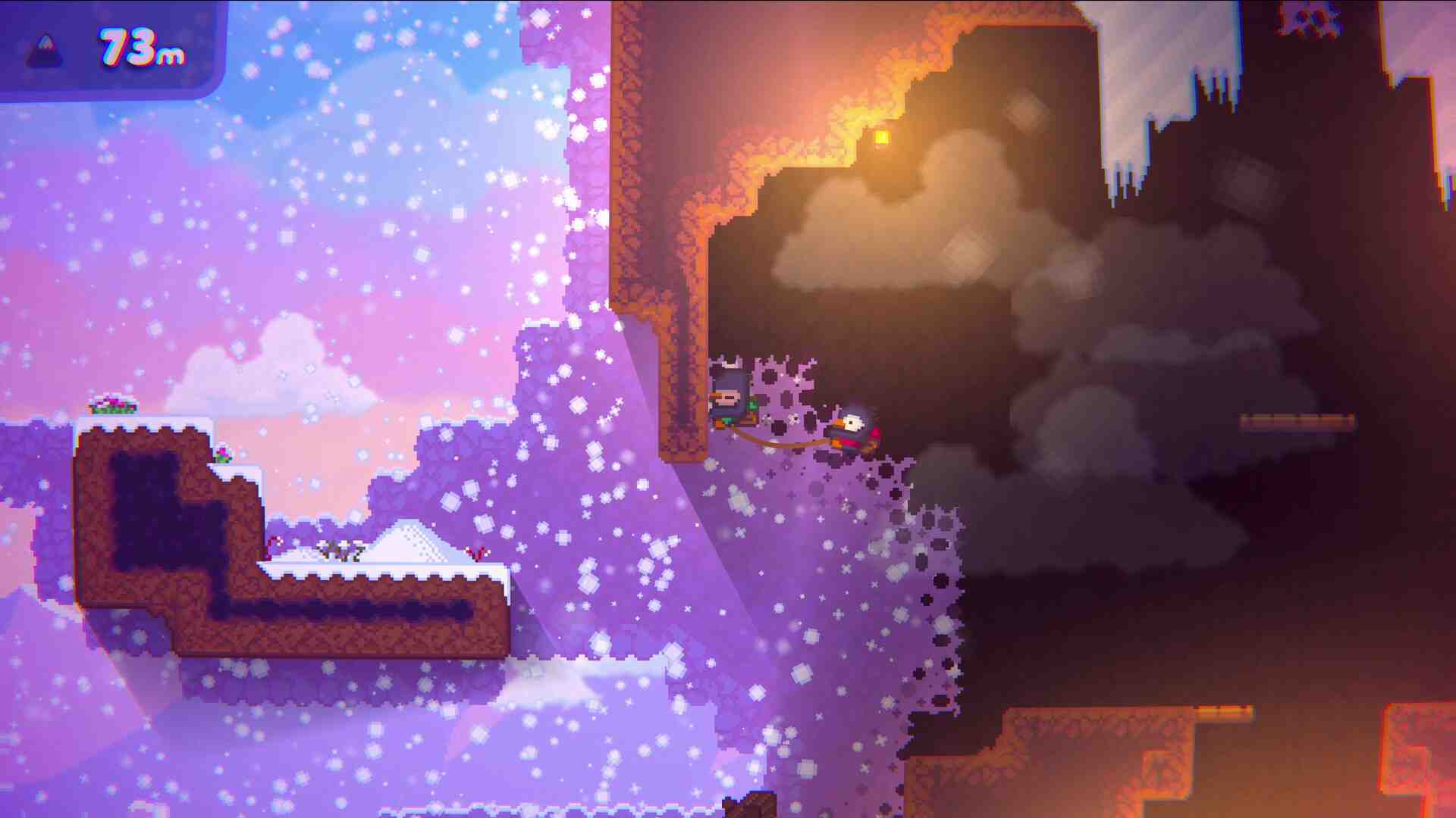 Bread & Fred is a challenging co-op platformer from Apogee where two players must cooperate to jump and climb to the top of a snowy mountain. Play as both Bread and Fred in their exasperating and sometimes maddening climb that requires precision with every jump. Each time you land you’ll be closer to the peak and one step closer to mastering the platforming, but your fall down the mountain will be even farther. Swing to reach distant platforms! Bread and Fred are attached to each other. That means you don’t only fall together, but you can make good use of momentum to swing and propel each other beyond what any single penguin could have ever jumped. Make sure one of you anchors down to the ground or you’ll both fall! Hold on to walls as long as you can! The penguins’ little hands aren’t very good, but you can hang on a wall with your partner for a few seconds to swing them around and overcome the next obstacle.