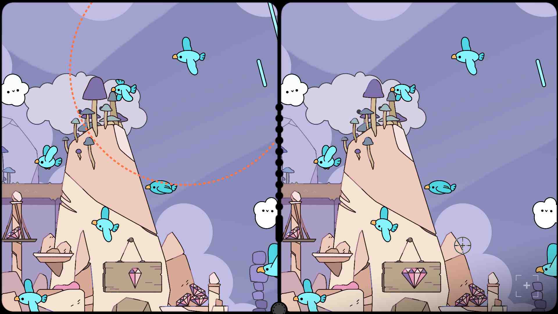 What’s awesome about Broken Lens is that there are a variety of biomes to uncover the more you play and with such a fun and colorful art style, the game is really amazing to look at. Each element of this game is hand drawn by artist EncreMecanique and the care that has gone into the game is easy to see. Broken Lens features fun birds, frogs, alien creatures, mushroom people and tons more awesome little buddies to discover the more you play. For those that think they may get frustrated trying to find every difference on each level, Broken Lens does feature a hint system that players can use. The hint will highlight a certain area of each level where there is a difference still left to find. The catch is that you can only use a hint every couple of minutes. More than once I found myself waiting around for a hint because I only had one difference left to find and had no idea where it was so it can be a bit frustrating. But, the upside is there’s no limit to the amount of hints you can use so if you’re really stuck, you’ll always have that option.