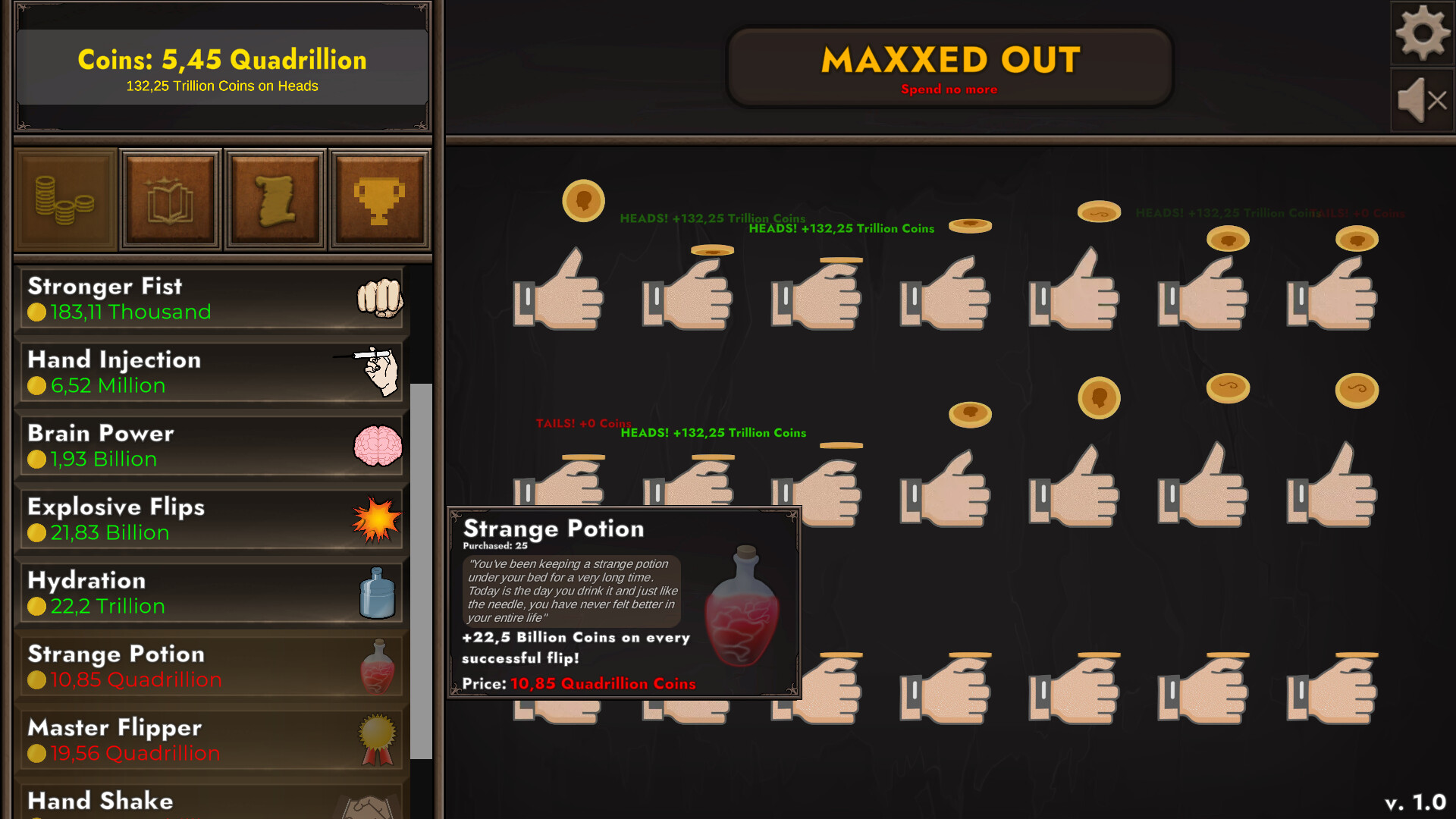 This game currently not compatible with a wide screen monitor. I am working on a fix for this at the moment. If you have bought the game and you are using a wide screen monitor, try pressing ALT + ENTER and force the game to windowed mode **NOTE** Coin Flipper is a game about flipping coins. You will start with a simple coin to flip that will give you 1 coin if it lands on your side of choosing. The more coins you flip the more coins you get to spend on upgrades which will give you more coins to flip which will give you even more coins to spend! You will choose either heads or tails which will determine if you get coins on the side of your choosing. But it’s not always 50/50. You always have a small chance to hit a lucky coin which gives you extra coins! Coin flipper is a game that will automaticly flip coins for you after a little playtime. You can go on about your daily tasks while your coins are being flipped for you. After the game automaticly generates coins for you it will give you so many coins that you can buy better upgrades. And with these upgrades you will start to earn million and billions of coins.