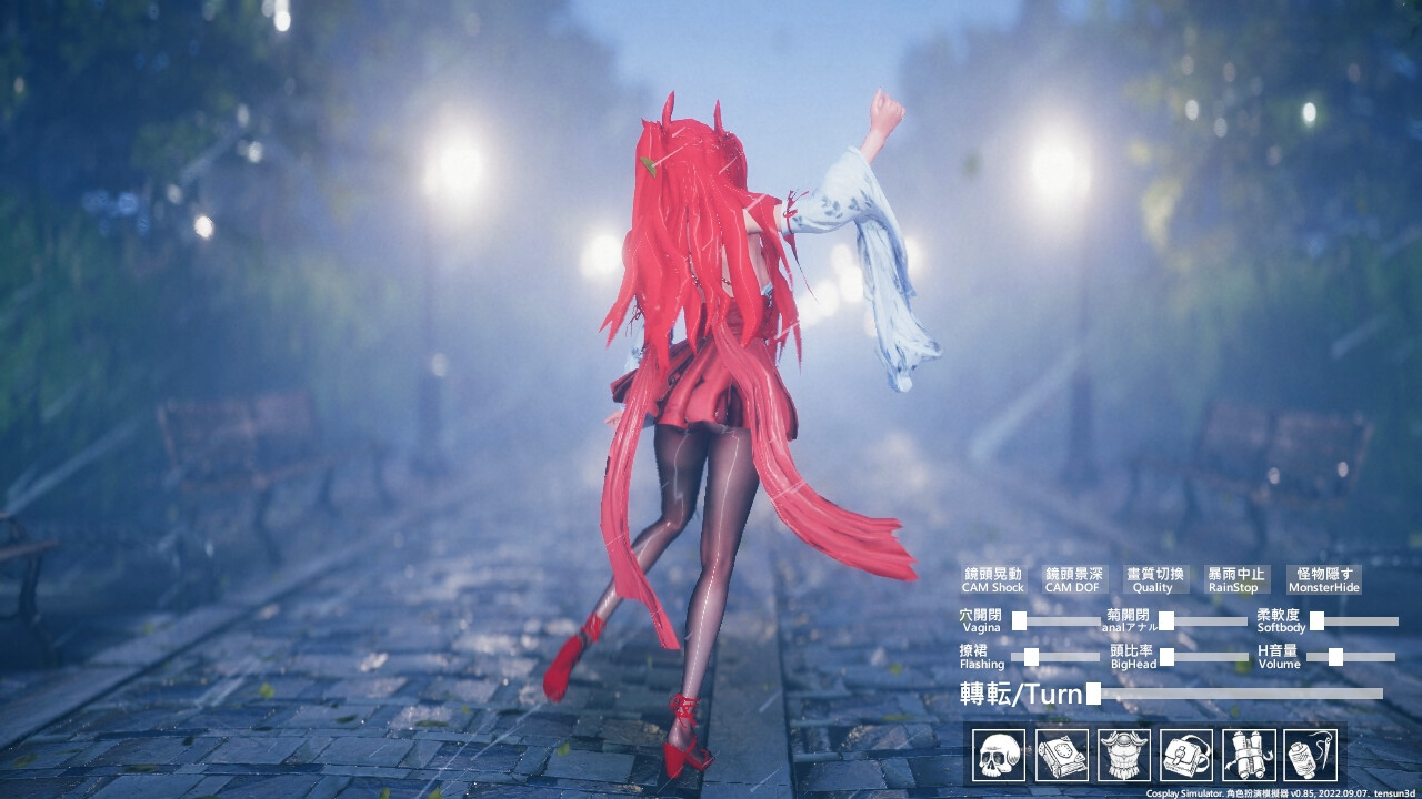 Cosplay Simulator This is a gallery simulator with a wealth of costumes and various sex scenes for viewing. The operation is intuitive and simple, there is no long game puzzle solving process, the game can be watched immediately, and it is suitable for players who want to see the ending quickly. , This work is not yet the final version, and new characters and sex scenes will be added one after another to satisfy the rich imagination of players! The UI settings you’ll be greeted with and one that is present during the animations lets you control a number of things. The Depth of Field, turn the Rain effects on or off, Quality of the graphics in the scene, hide/show monster. There is also the option to adjust the size of the opening of the penetration points (to put it nicely), the level of jiggle for the girl, volume of her voice in scenes, flashing (essentially lifts up her clothes to show the opening points for better viewing during scenes) and Turn which moves the “scene” area. Before jumping in, do note that there is no game here or anything along the lines of a cosplay based simulator as stated in the name.