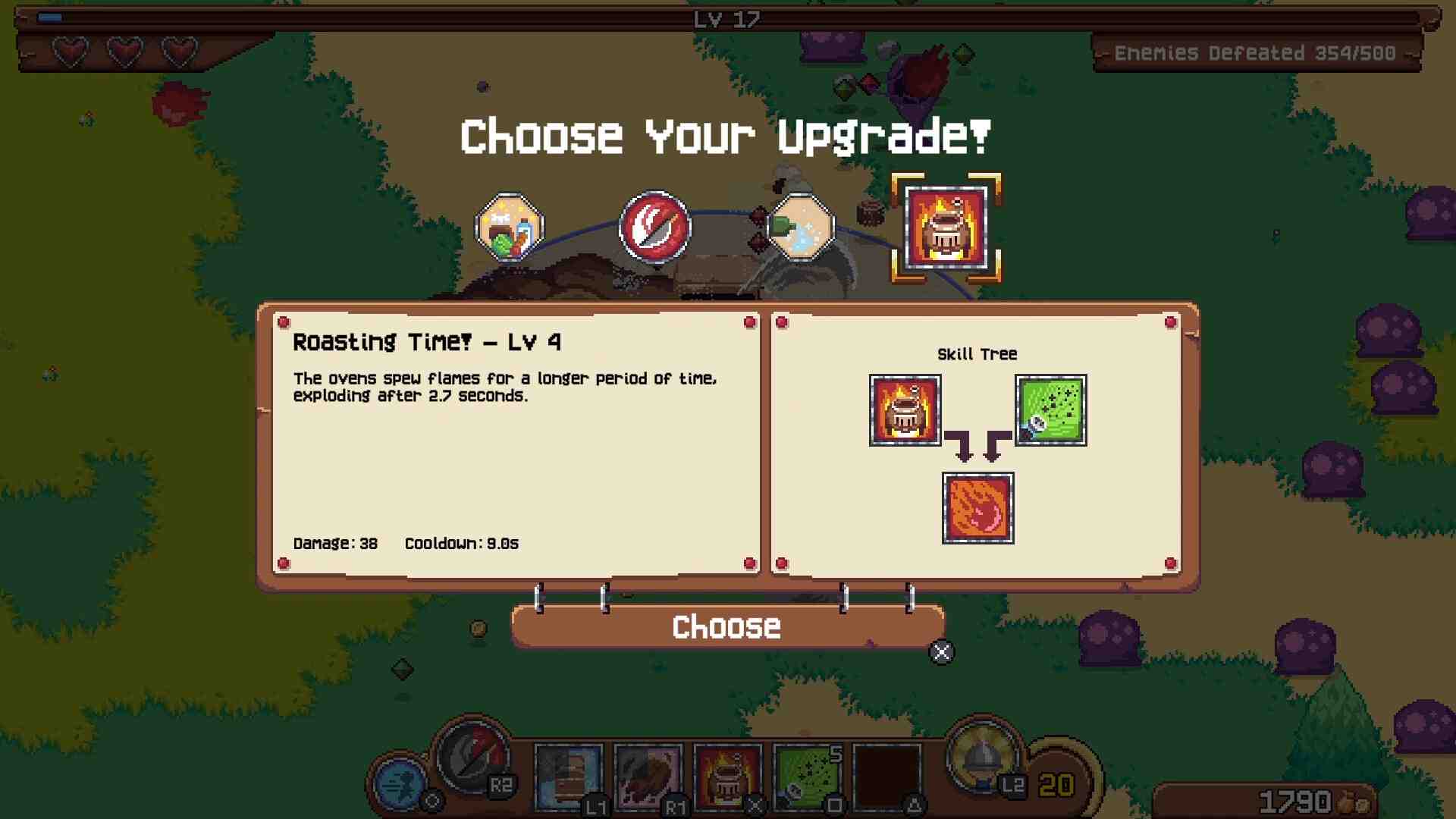 Select from a variety of upgrades in this Action Roguelite, to create unique builds catered to each character on each run. Are you going to be a Chef focused on serving deserts or roasting your foes? A Seamstress that will patch your enemies together or massacre them with yarn balls? Which material would you choose for your statues: wood or marble? Find your own crafty way to SURVIVE! Choose from a variety of crafters and artisans with their own unique set of skills and mechanics, for different gameplay experiences. Between cooking your enemies, sewing them together or building statues that will crush your foes, there will always be a crafty way to defend your home! Gather materials from enemies and use them to upgrade your village, unlocking new characters, extra buffs and grow your power even further.