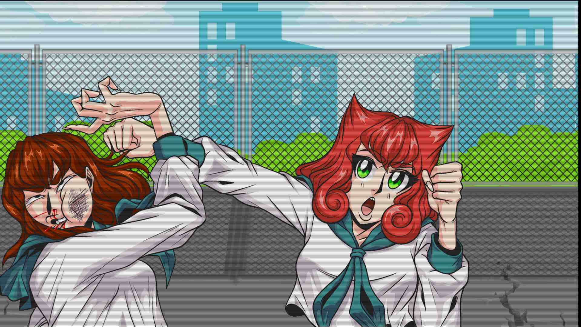 The story grows from “Haha, funny take on typical high school anime” to “HOLY CRAP”, leaving you eager to see how it will end and later – to see the other endings. However, I do find it a little frustrating that you can’t skip cutscenes that you’ve already seen. What starts out as a fun take on anime high school tropes quickly evolves into something much darker and disturbing, with the “bad” ending being an absolutely stellar segment and a highlight of the game, reminiscent of Hitchhock and Argento works. Great writing all around, catchy soundtrack, memorable visual style and fun combat system.