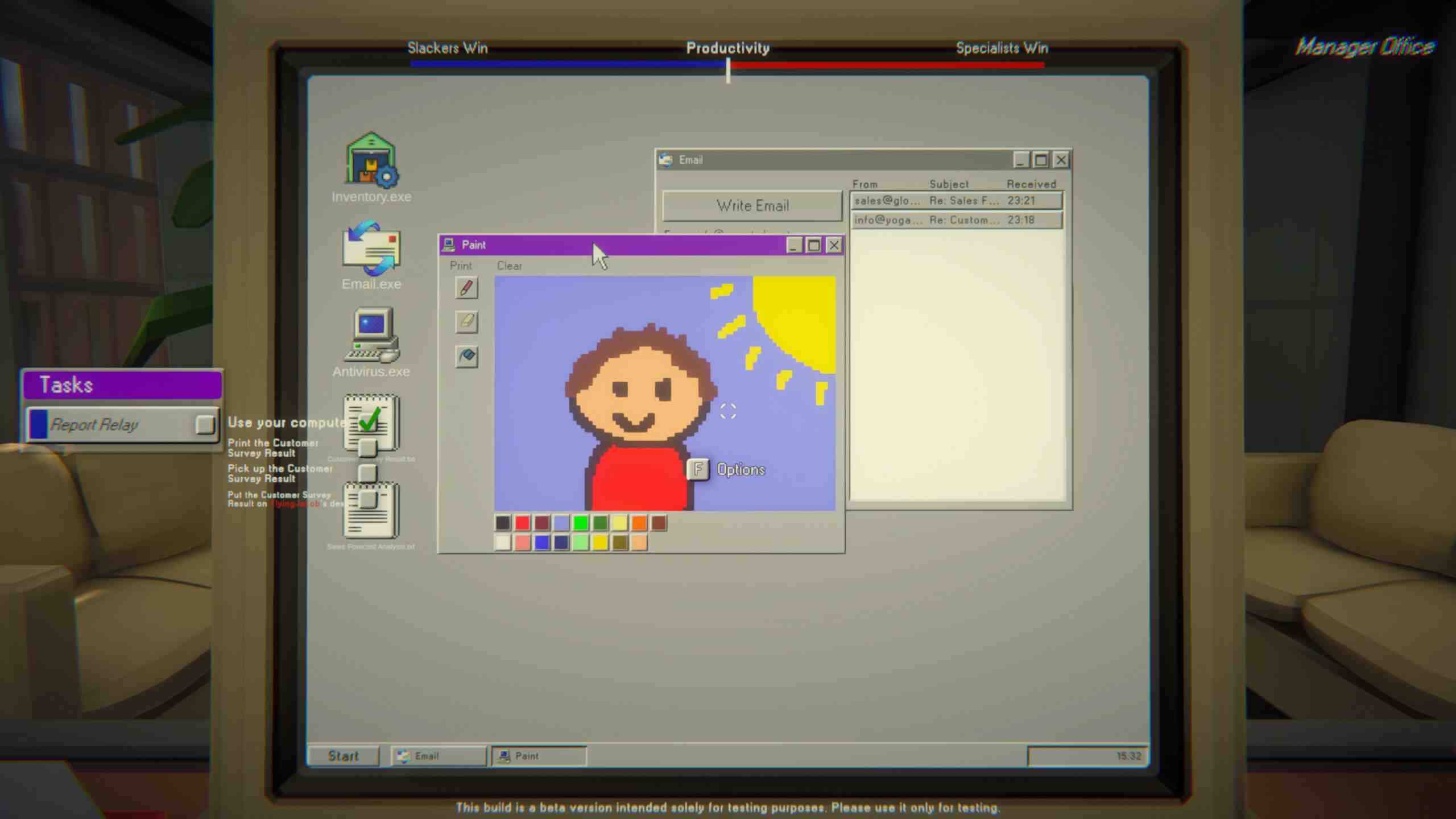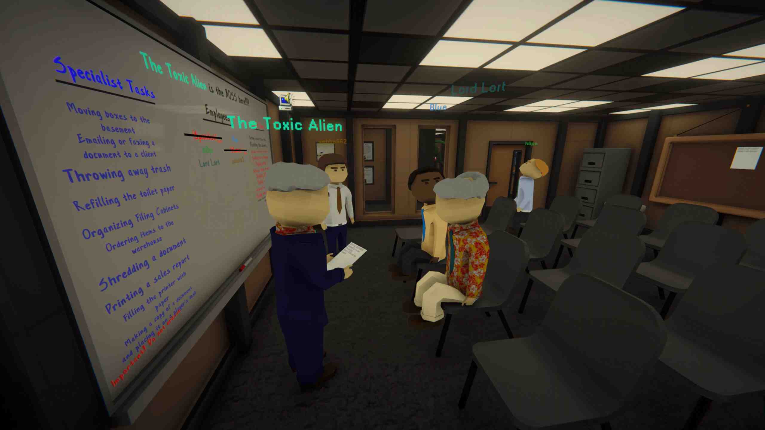Managerial Oversight: The Manager must observe, deduce, and decide who to fire, with each choice potentially altering the game’s balance. Experience the Office Like Never Before. great chaotic time. wish there were more prank tasks and more broken things needing repair by janitor or assistant. like having to empty the shredder or unplugging the power. or maybe pranks like traps that debuff someone that walk by like banana skins. would hope for more joke neutral slacker tasks that specialist can do too. A couple of issues here and there with overall balance, and as with any game like this, you occasionally get the lobby with self-proclaimed comedy geniuses/family comedians, but that’s just how these games are.