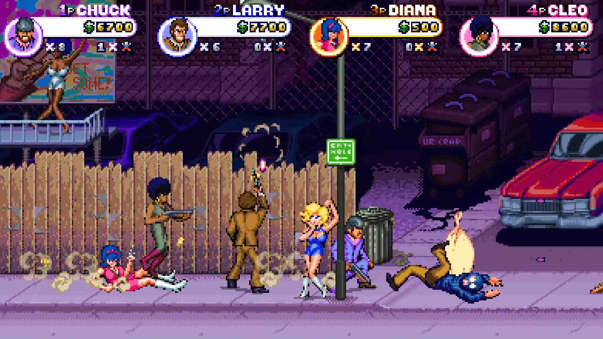 Deathwish Enforcers Special Edition Video Game There are five protagonists available to players to choose from, all clearly inspired by characters from 80s detective films. Let’s start for example with Larry, a clear parody (not too much to me) of Inspector Callaghan armed with the trusty 44 Magnum. We move on to Chuck, or rather the “cartoon” version of Charles Bronson in Death Wish , to then close the quartet with two heroines, namely Cleo, a clear reworking of Tamara Dobson’s characters such as Cleopatra Jones, and finally Diana. ideally inspired by a mix between Emma Peel and an anime character like dear Margot from Lupine III. I spoke of “quartet” because in fact the four characters mentioned form the poker available in the first version of Deathwish Enforcers, which is integrated here in the Special Edition by the unpublished Maxell , a parody of a certain James Bond, obviously armed with a golden revolver.