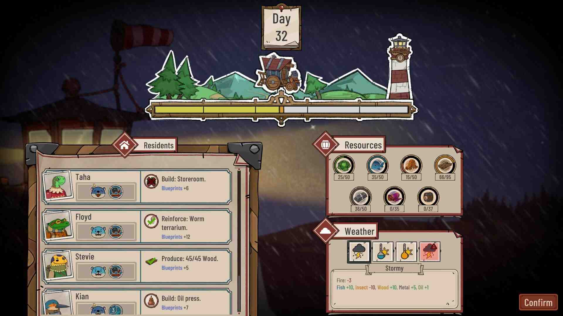 When the travelers arrive at dusk, the keeper always shares a warm meal with them. He will decide of the quantity and variety of ingredients that are to be cooked. The chosen recipe will grant bonuses to every traveler on the next day. Depending on the day’s weather, some parts of the game such as the production or the Lighthouse’s fire can be affected. You will also have to watch out for tsunamis and submarine eruptions. After eagerly awaiting the full game for 8 months, Diluvian Winds’s Early Access release demonstrates its potential as a fantastic management/adventure game, with the promise of an even better full version.