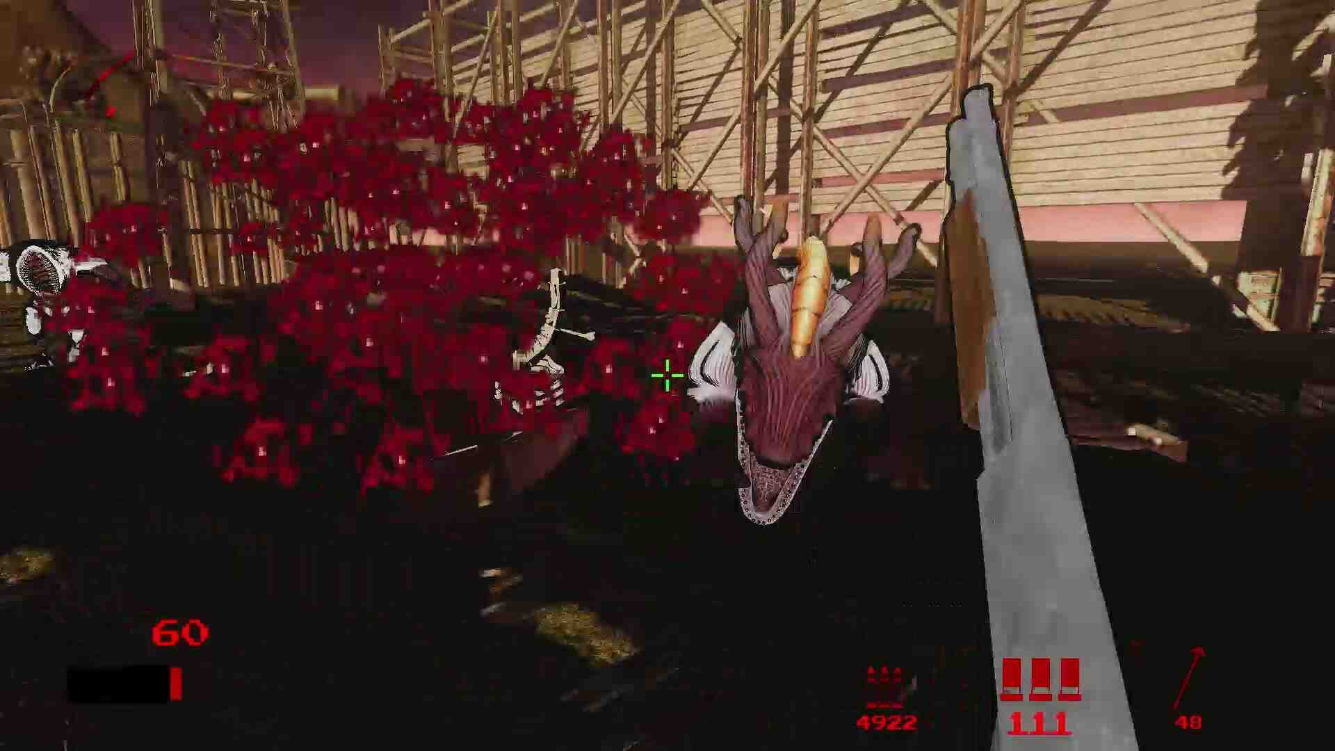 I think the game could benefit with better hit indicators – a bloodied screen or more of a shake come to mind. I tend to not be able to tell when I’ve been hit from behind or the side because the current screen shake is so minor compared to the rest of the blasts and gore happening on screen.I believe one of the hidden achievements (lost senses, gained strength) is bugged, as well as spread the pain. Or I’m stupid. These are personal nitpicks, but I think berserk should have a persistent red tint or blood splatter on screen and I like boomer shooters with more freedom of movement. A dodge or rush button could make the gameplay loop much more engaging and adrenaline fueled.