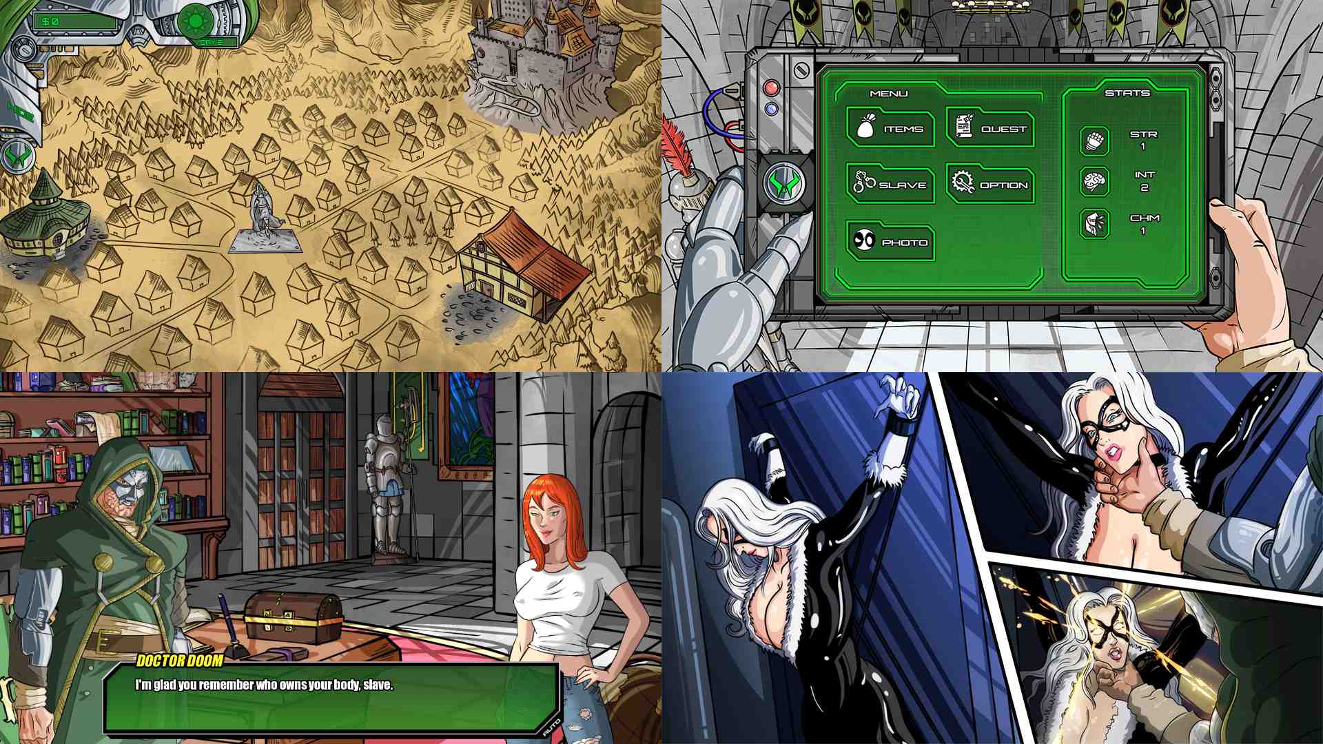 Doomination domination is a parody point-and-click visual novel game with a comic book style. After losing and losing his powers and expertise, Doctor Doom is no longer able to fulfill his dream of ruling the entire globe. A mysterious witch named Ratri will intervene on his behalf and awaken in him the ancient Dominium power of the conquerors. His plan of conquest begins when he forms an alliance with Ratri, driven by his desire for vengeance and global dominance.The loss of control and autonomy experienced by women in mind control and corruption games is portrayed through skillful writing I think the game’s premise is great and I hope the developer keeps going. Simultaneously, I hope that the content was given the same consideration as the wonderful and distinctive artwork. I have to admit, even though this game isn’t quite finished, it’s really beautifully made.
