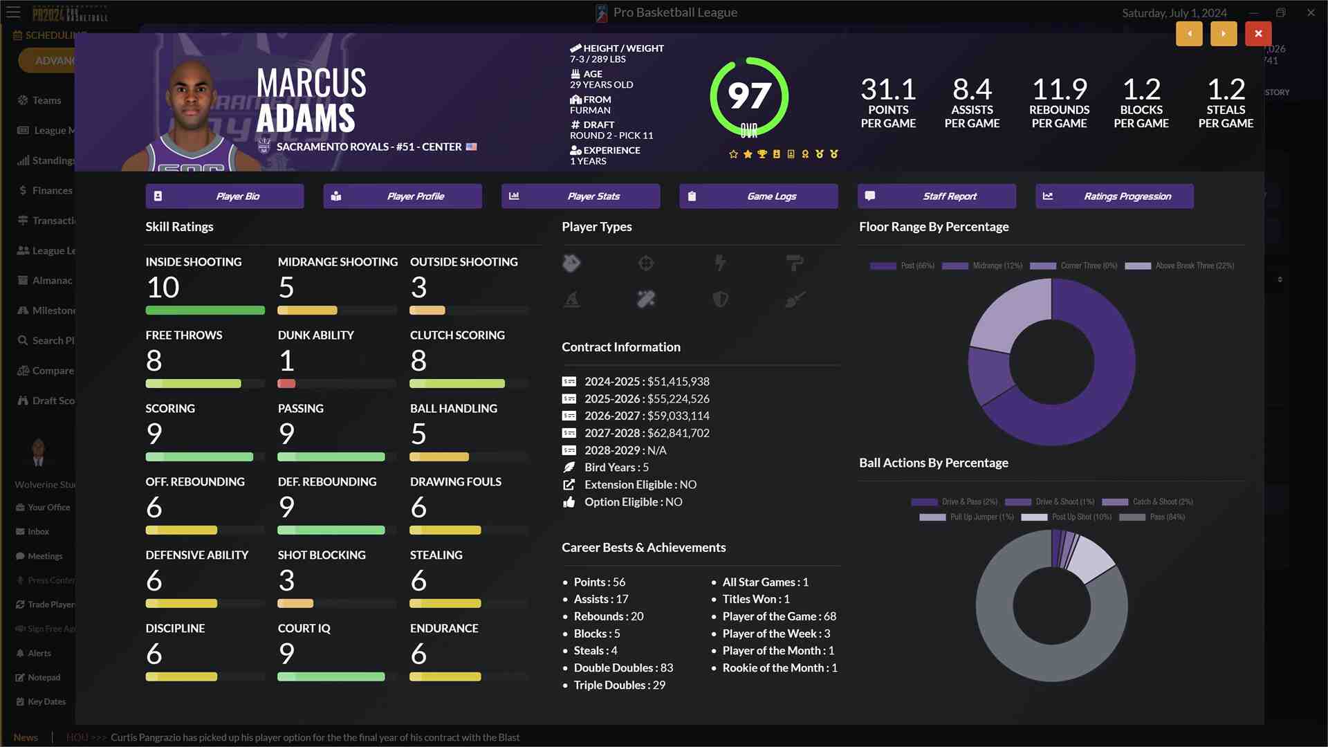Used to be back in the days of Reggie Miller but not a big fan of the modern-day NBA. But I like PC sports management games because of the customization ability. So how realistic are the stats? How accurate do the players play? I’ll let someone else decide that. The last Pro Basketball offering I played was 2021 and the expansion back then automatically put both teams out west. So if you made one of the expansion teams, say Kentucky they were automatically put in a division out west. That has no been changed (and was changed in 23 I believe) to allow you to expand to a 32-team league with divisions of four teams. And then you can edit those divisions by swapping teams out on a one-for-one basis. The long-overdue upgrade addresses issues like player movements, spacing, and ball physics, creating a more realistic and fluid gaming experience.