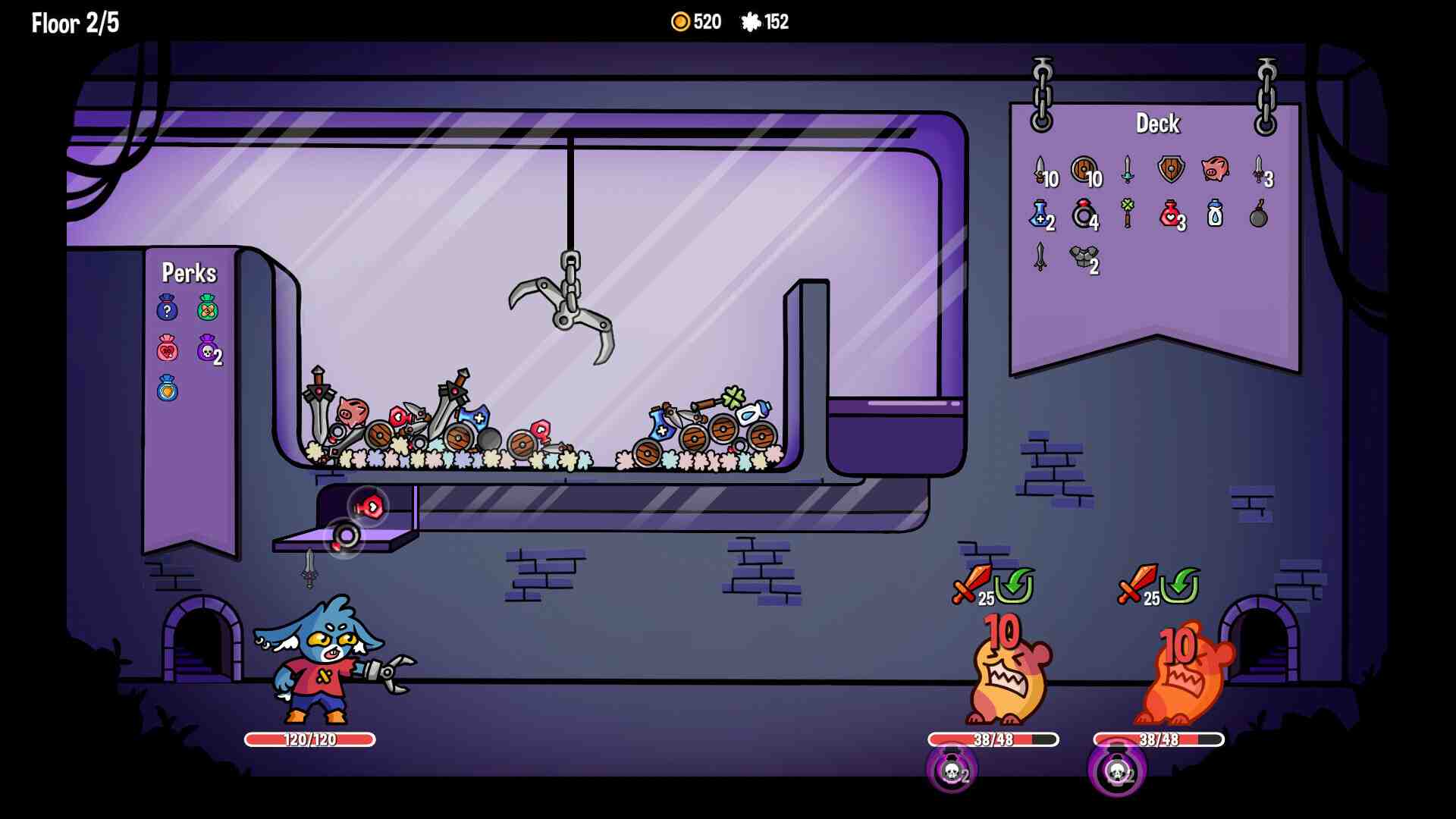 I’ve never played a deck-builder where I must go and fish out the items with a crane. Praying, hoping, and rooting are excellent strong catches, which isn’t always the case. It definitely comes with a small portion of luck! I’ve had items falling out at the very last moment, grab nothing, balance on the little mid-section wall —because why not— and other funny, nutty stuff happen! I have put over 80 hours into the Dungeon Clawler demo alone. Everything in this quirky roguelike makes my brain go brr! It’s adorable, quirky, challenging and you should play it! There are so many ways to build your run, the possibilities for replayability are endless.
