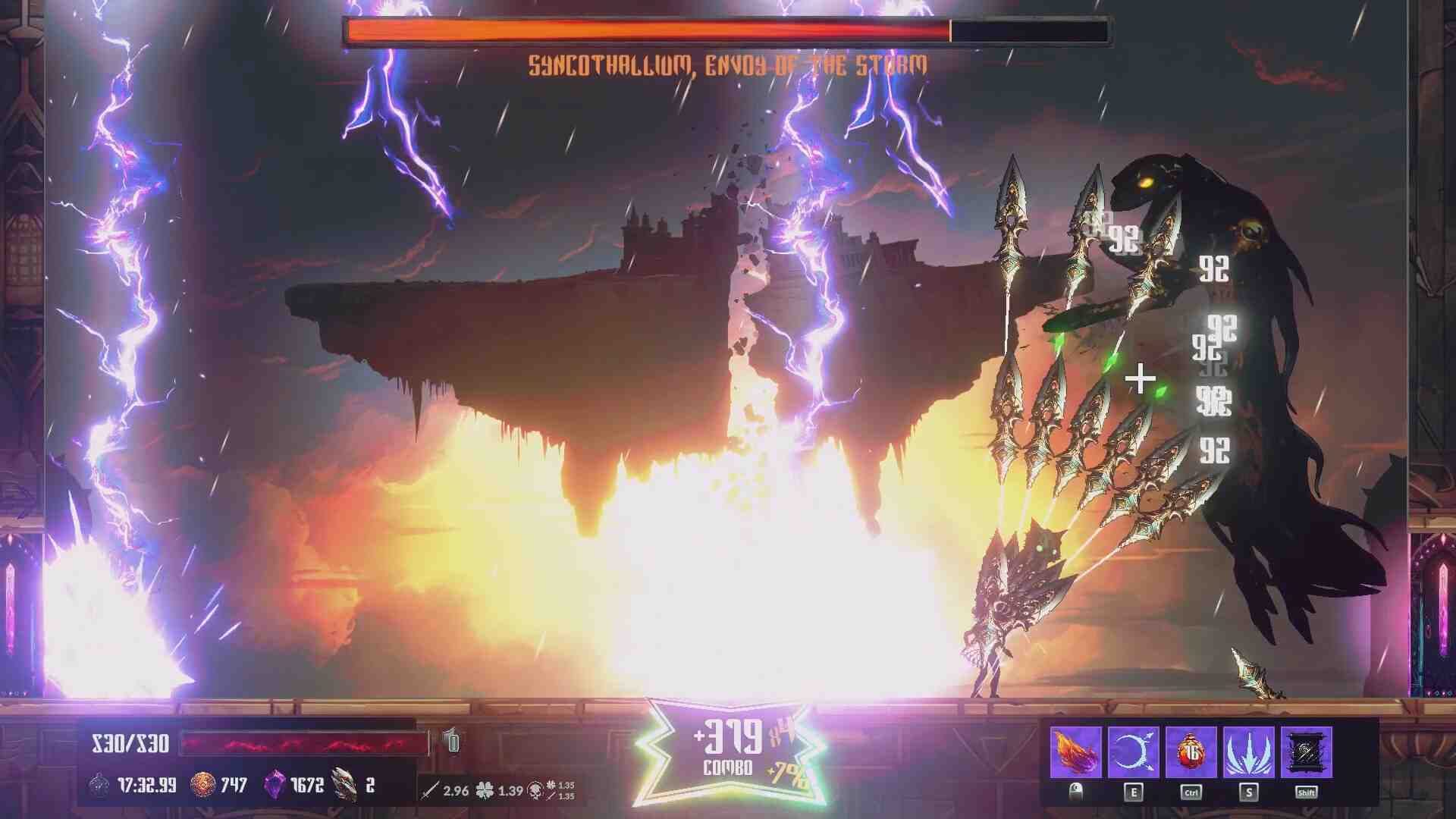 And thanks to the semi-predictable layout, you can really master the different areas and go absolutely ham through them, as a good momentum-based game should let you. That being said, the game is a little bit shy of perfection. There are some launch bugs, most of which are minor, but pressing Esc while in a chest (in hopes of checking my inventory) resulted in a freeze, forcing me to quit out of a pretty good run 🙁 There is also some visual oddities in 4k (House of Cards deck and the credits sequence), but I think the think that irked me the most were various animations (mainly main character slow movement/final boss a bit too). They do their job, but probably the weakest of the overall amazing audio-visual experience this game is. Cause yes, the soundtrack has no right going this hard.