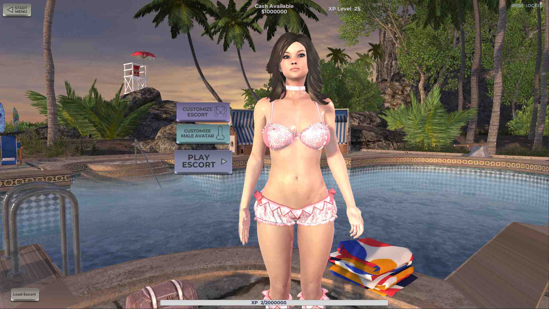 Escort Simulator 2 is an immersive real time 3D adult RPG playground where you control the look of a sexy avatar escort exploring the hidden pleasures of a secret Polynesian island. Your imagination is the only limit to the potential fantasies you can explore in this deep and ever changing erotic universe. In-Game Dynamics produce realistic bouncing breasts and jiggling butt cheeks. Each character contains hundreds of customizable settings, including hair, face and body edits. Level up your character as you explore the island, unlocking new and exotic costumes, swimsuits, and seductive lingerie. Experienced players my even unlock non gender “futa” character, lesbians, and other male characters to party with while staying on the island.