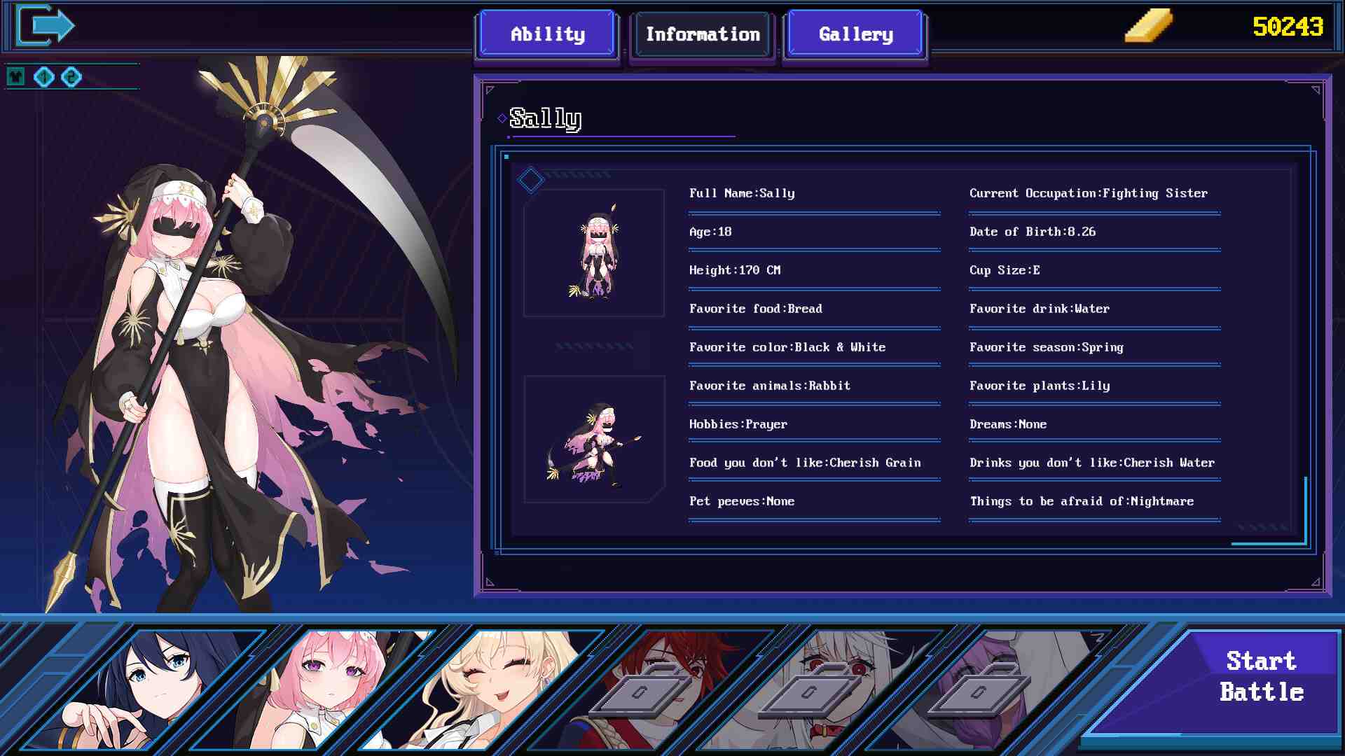 1. This game has no real adult content, only Nudity. If you want to buy adult game, then it may not be able to meet your needs. But you can still look at the CG in the preview image first, which can help you understand the sexy girls of this game. 2. I only have 1920* 1080,1366 *768 monitor. If your monitor is not 16:9, it is recommended to use “Window Mode” to play the game (especially with long fish screen). If the image is mismatched, I apologize to you, it is that I do not have the money to buy advanced monitors for game testing. 3. This game is based on the principle of “good steel is used to the edge”, the funds are basically invested in the characters (character drawing, cg and animation frames), so the skills effect, ICONS and sound effects in the game are all from the Unity Store. If you are very resistant to these common assets, the game is difficult to meet your needs. 4. This game is a VS like game with sexy girls (now there are 3 characters, a total of 3 CG sets, 90 magic, 41 artifacts, 120 talents.