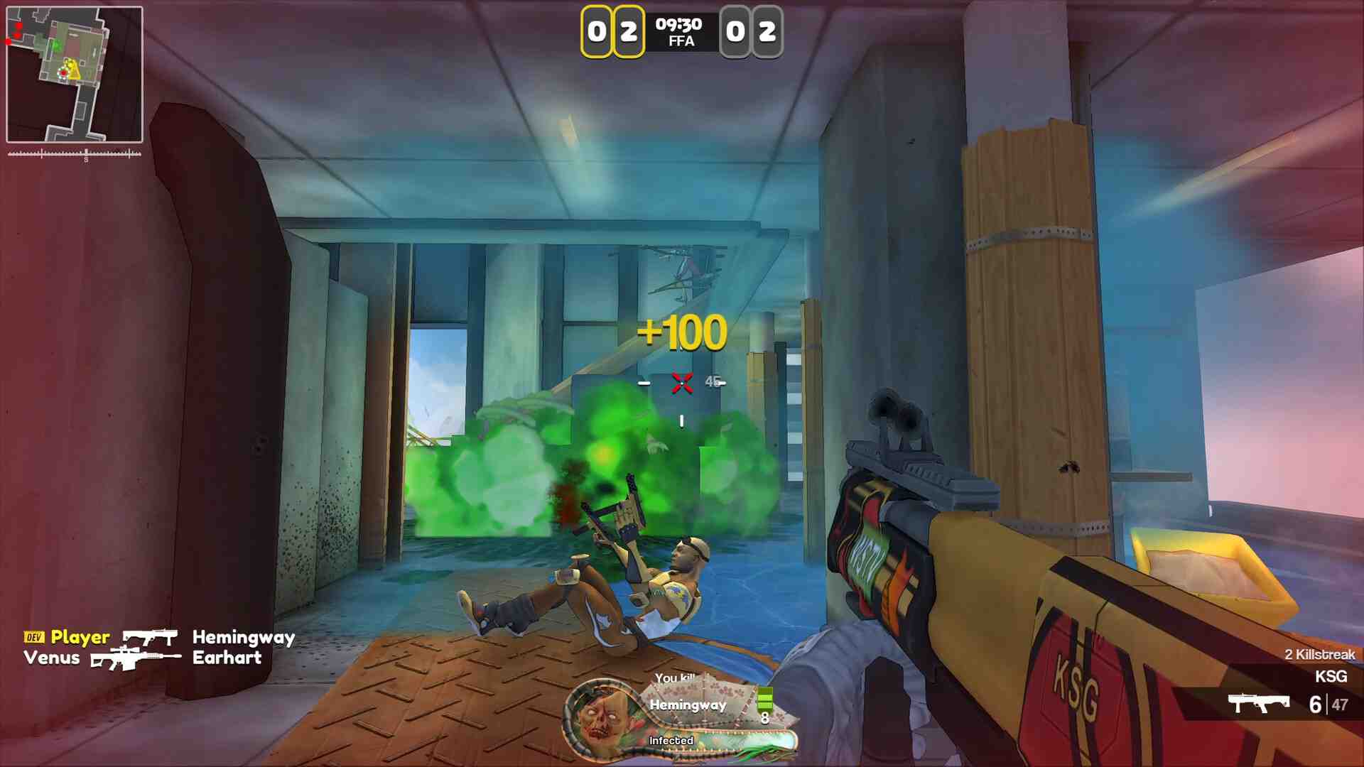 False Front is a cartoony first-person shooter set in a huge sports arena. Dominate the spotlight with powerups, using the speed and momentum from bouncing on trampolines. False Front is for the casual gamer that just wants to have some fun for a while. Skilled players are rewarded for being skilled with killstreaks, and the noobs are rewarded random powerups to get some help. Have an Xbox/PlayStation controller? Plug it in and play some splitscreen with a friend, even online. False Front Infected is our vision of how to turn a happy FPS into a horror game. Play in a pitch black arena using only a flashlight and some nightvision goggles to try to survive the infection. Infected also lets you play as the zombie, this is great to play with your friends and can be played online, offline and with splitscreen.