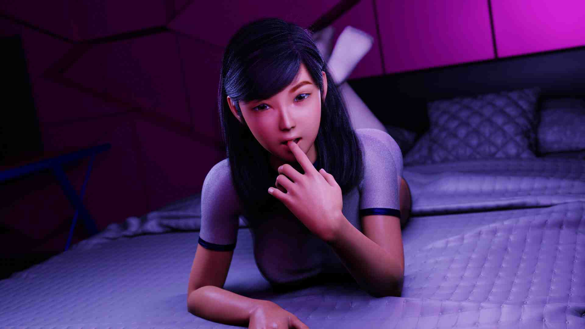 There is a Combos chart to show you what combinations produce what results. As the game advances you’re given access to different tools, a horizontal cutter, a vertical cutter, and a mixer. The cutters allow you to cut a single row off of the fruit, allowing you to trim off the parts that aren’t useful to you. The mixer turns the fruit 180 degrees, so the top left portion becomes the bottom right portion. The character still does look like they’re part of some LOL Doll trend, but I can get past it this time since the aesthetics of the game are built to work with the model as opposed to in contrast to it. There’s been a lot that’s been improved on since last time, but now we’ve got to tackle the small fish. In terms of lewds, you’ve got 10 short looped Daz3D animations that you unlock with money and can post for… engagement? followers? To be honest, I’m not actually sure what it does and the “AWARD” mechanic is a little confusing since it’s not exactly money it’s awarding you, at least not right away. Each lewd animation has 3 variants that you’ll unlock as you play, the first being almost fully clothed, the second being topless, and the third being in a bunny girl outfit.
