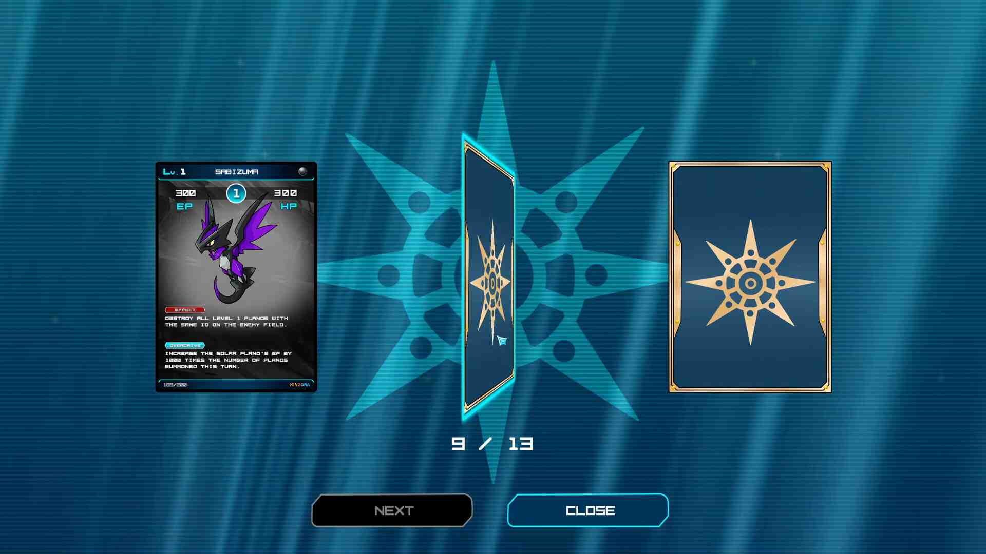 Final Stardust is a return to basics for Collectible Card Games! It’s built around fast-paced, five minute battles thanks to streamlined, easily understandable gameplay. Thanks to instant effects and positioning your monsters – or Planos – it’s all about how you play the hand you draw, rather than mastery of meta and min-maxing your deck. No overcomplicated effects. No special rules. Just you and your opponent, a stack of cards with easily understandable effects, and an endless variety of tactics to use. What matters is your choice here and now. Mechanics are balanced to ensure fast paced matches that aren’t decided in the first ten seconds by luck of the draw. You can always make a comeback with the next hand if you play the cards right, even if you’re up against the wall. Worried about stalling? A set turn limit ensures each game wraps up quick! You don’t lose a battle to random chance or the opponent having a one-in-a-million combination of exotic effects. It’s all about your choices in each match, making every win and every loss understandable. Once you understand the core mechanics with a few quick matches, it’s all down to skill!