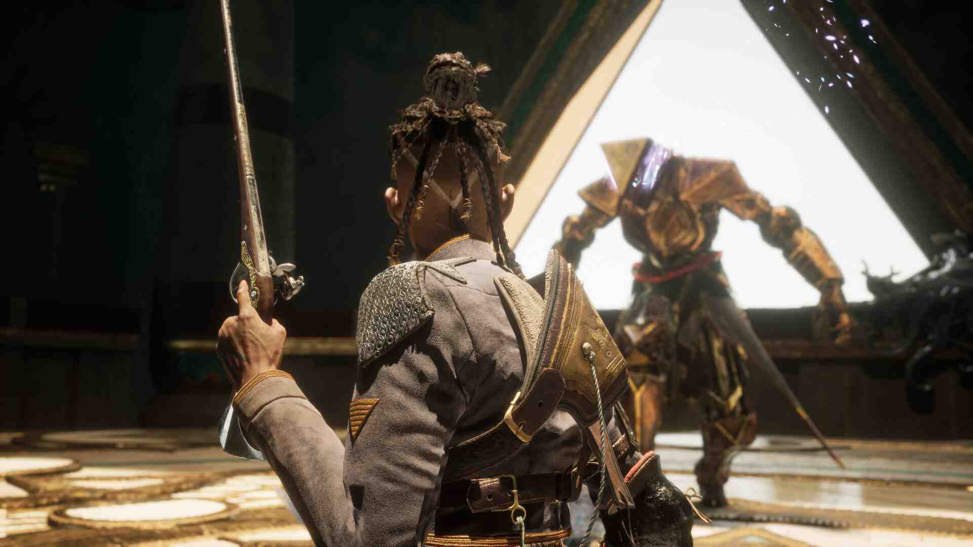 Flintlock: The Siege of Dawn Video Game From games studio A44, makers of Ashen, comes an explosive Souls-lite, where Gods and guns collide in a battle for the future of humanity. The Door to the Great Below has been opened unleashing the Gods and their armies of the Dead. The lands of Kian are besieged, the city of Dawn is on the brink of destruction. It’s time for the Coalition army to fight back. Embrace vengeance, gunpowder and magic as you embark on an epic journey to defeat the Gods, close the door and retake the world. Souls-lite, Not Souls-like: Flintlock doesn’t shy away from its Souls-like inspirations, but it carves out its own identity. Combat involves locking onto foes, dodging, blocking, and unleashing axe attacks. However, there’s a Bloodborne-like twist: you wield a firearm that interrupts enemy attacks, adding an extra layer of strategy. Gunplay and Melee: Ammo replenishes after melee strikes, sparing us the tedium of realistic flintlock reloading.