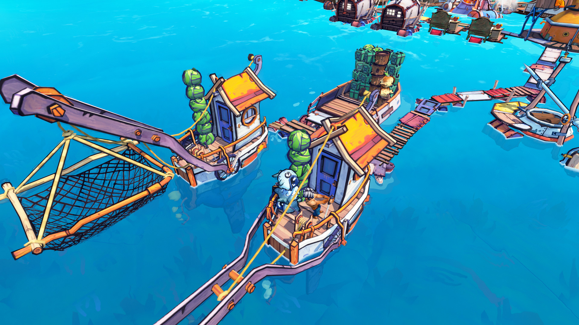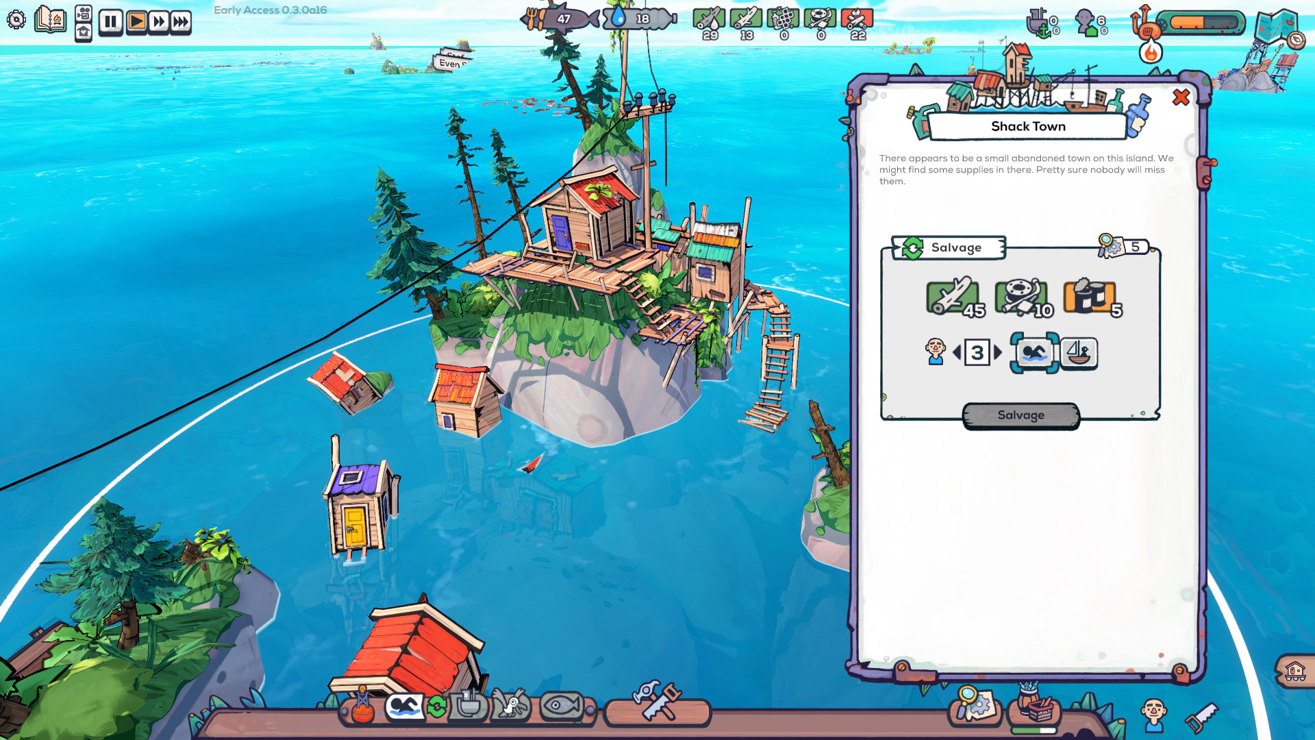 Manage your drifters as they try to survive in a harsh ocean world, where everything is trying to eat you or sink your town to the depths of the sea! You’ll need fresh water, seafood, and scrap to make sure your drifters can make the best of this wet situation. Luckily the flooded environment offers all kinds of relics from the old world to recycle. Your drifters can transform garbage, driftwood, and flotsam into boats and buildings. These allow them to collect rainwater, hunt for various creatures, and reel up scrap from the ocean floor.
