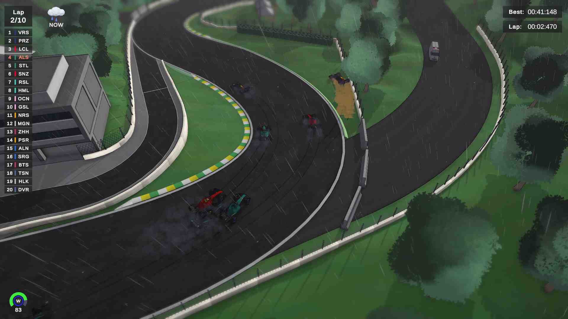 Unbelievable game its like megadrive racing but updated graphics and controls dovong into hairpins like real f1 cant eait for mods and s workshop to hopefully get the 90s cars ect and eoulf love ondy car and nascar days of thunder versions or mods of not thanks for great game I’ve been enjoying this game a lot so far. Very good top down racer, feels very nice to handle. Complexity level is good enough, with each tyre type actually feeling different. Just some minor bugs, like the game not advancing and getting stuck after completing the Quali lap. This game has more to deliver to make it more complete, such as racing against even your own ghost, but good lord the physics feel good. I don’t have incredible oversteer where every corner is an attempt to drift without losing speed. Momentum loss for going off course feels good, even though there is no time punishment the drop in momentum makes it tougher to abuse.