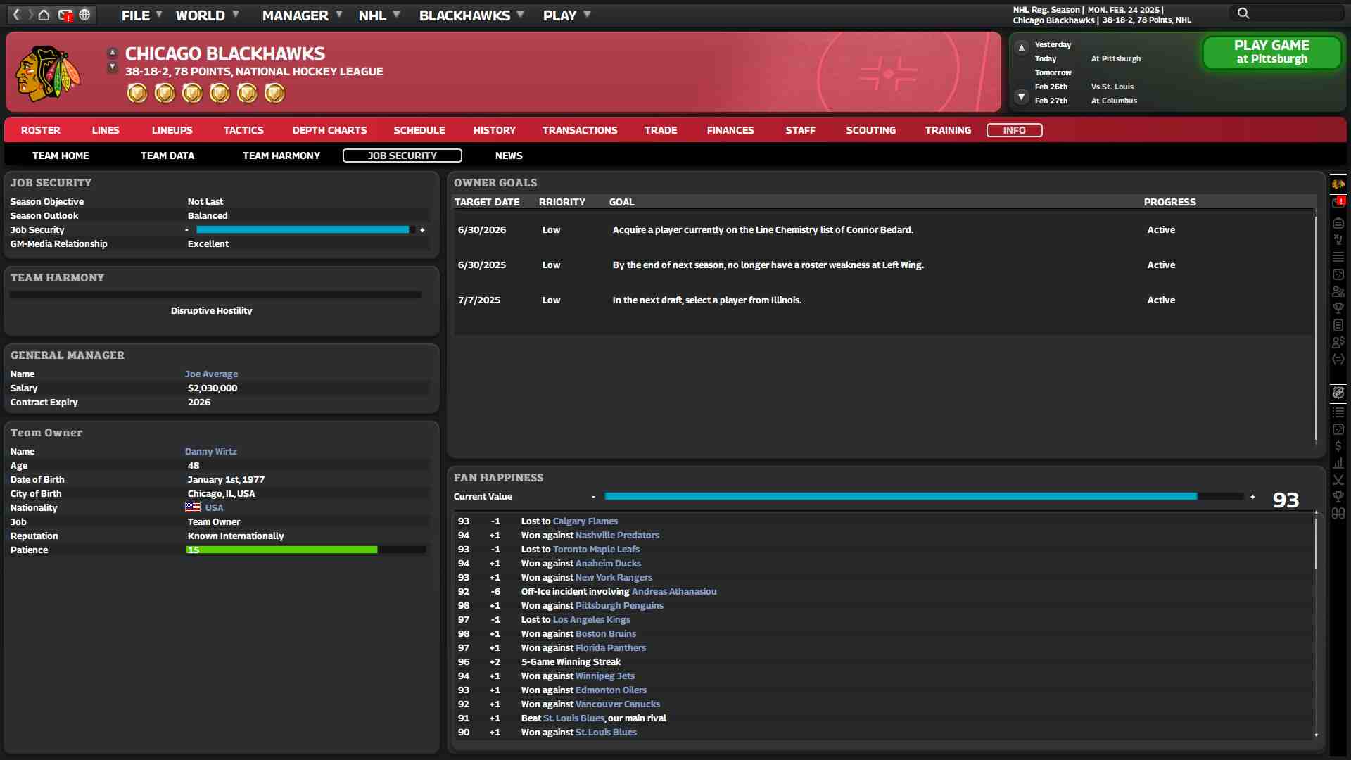 Similarly, the transfer system AI in Europe has also had some significant improvements of the same type the trading AI received The NHL’s new 4Nations Faceoff Tournament has been added to modern games Owner goals have been added: your owner will ask you to make changes to your team; failing to comply may put your job in jeopardy, but keeping the owner happy will help you stay employed Additionally, job security mechanics have undergone a major revision and should feel more realistic now Development tracking has been added for your players, so you can see how they’re progressing Coaches can now have specific tactical preferences and will be more effective when employing their preferred tactic(s) (and they’ll use them more often)