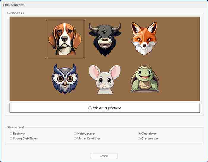 They regularly play on the attack, with a sharp opening repertoire. They are the ideal opponent for defence training with Black. The Swindler takes aggressiveness to the extreme, and o!en overplays the position. Material and solid position are of no interest, the main thing is to go for the king. Against this swindling fox, one usually has a material advantage, but suddenly it becomes highly dangerous. The wise owl symbolises the Positional Player. It loves a good pawn structure, a secure king of its own and coordinated piece-play. The distorted echo of this, is the fearful mouse. It appreciates crowded, safe positions and is afraid of complications. That is why it often plays weaker. The Endgame Fan, on the other hand, plays specifically for exchange. Simplification is paramount, the opening is o!en unambitious. When it comes to the endgame, on the other hand, things get really tough. An effective training opponent for this phase of the game!