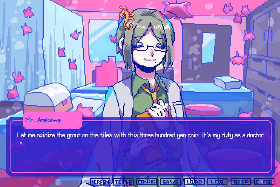 Streamer Mode does not apply to the Gallery, where images will remain uncensored) Content Warning This game contains strong language, sensitive topics, violence, horror, unreasonable scenarios, intelligible nonsense, and very loud noises. Please proceed with caution. With roughly eight hours clocked in and finished with fourth route, I’d say the game offered exactly what’s on the label. The game takes a silly tone with a few dark hints then and there, it doesn’t get really dark until the endings. Aside from Saeki’s path, I think the endings are foreshadowed pretty often in other paths and you don’t really feel blindsided with what’s coming. It’s best to embrace the game expecting absurdity than anything. The characters’ senselessness plays well with the silliness of the story and acts a decent contrast to the underlying plot. I think the most coherent character is Aorta and you can only find that out by reading the history log, which also reveals a lot about his path.