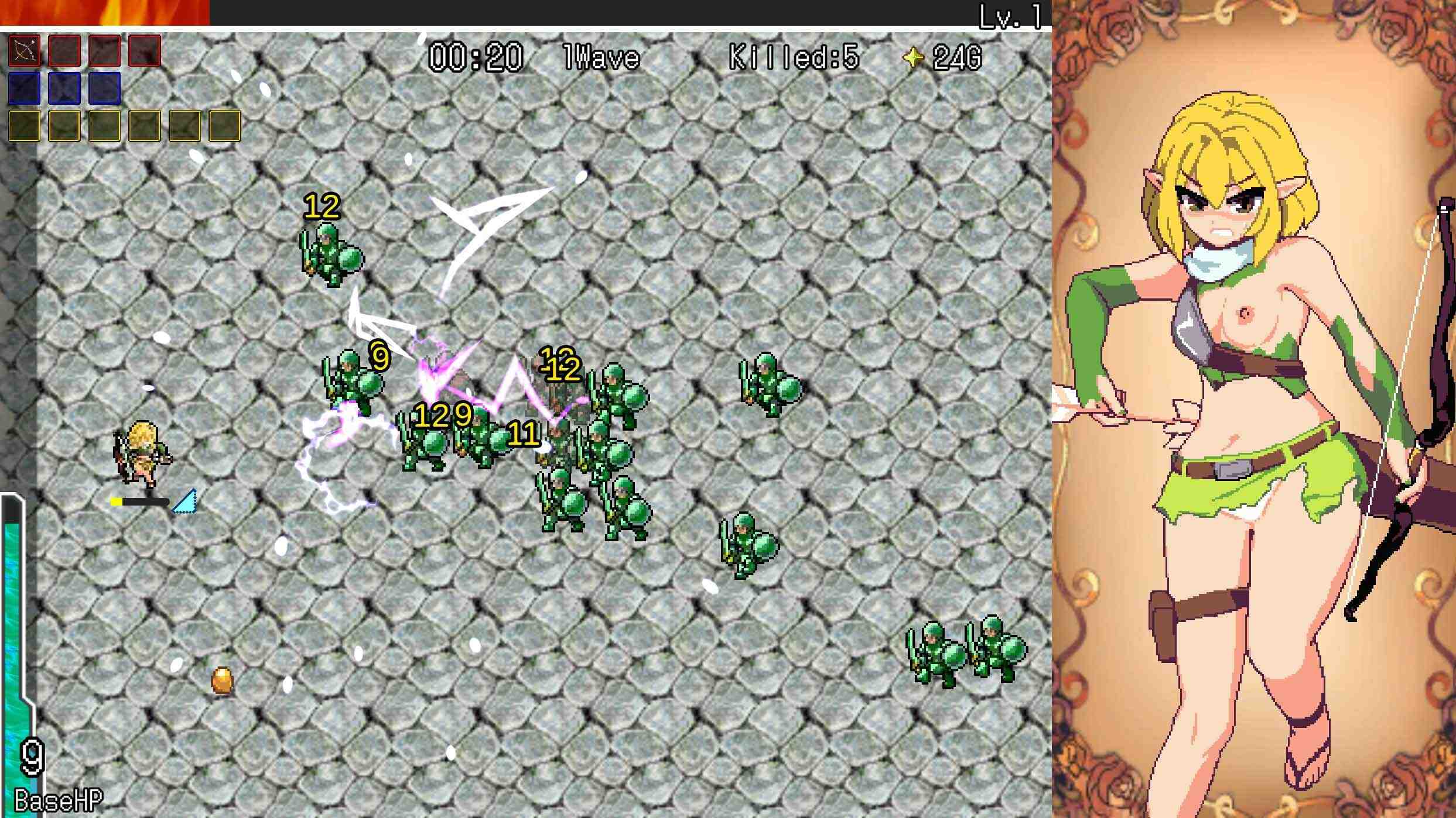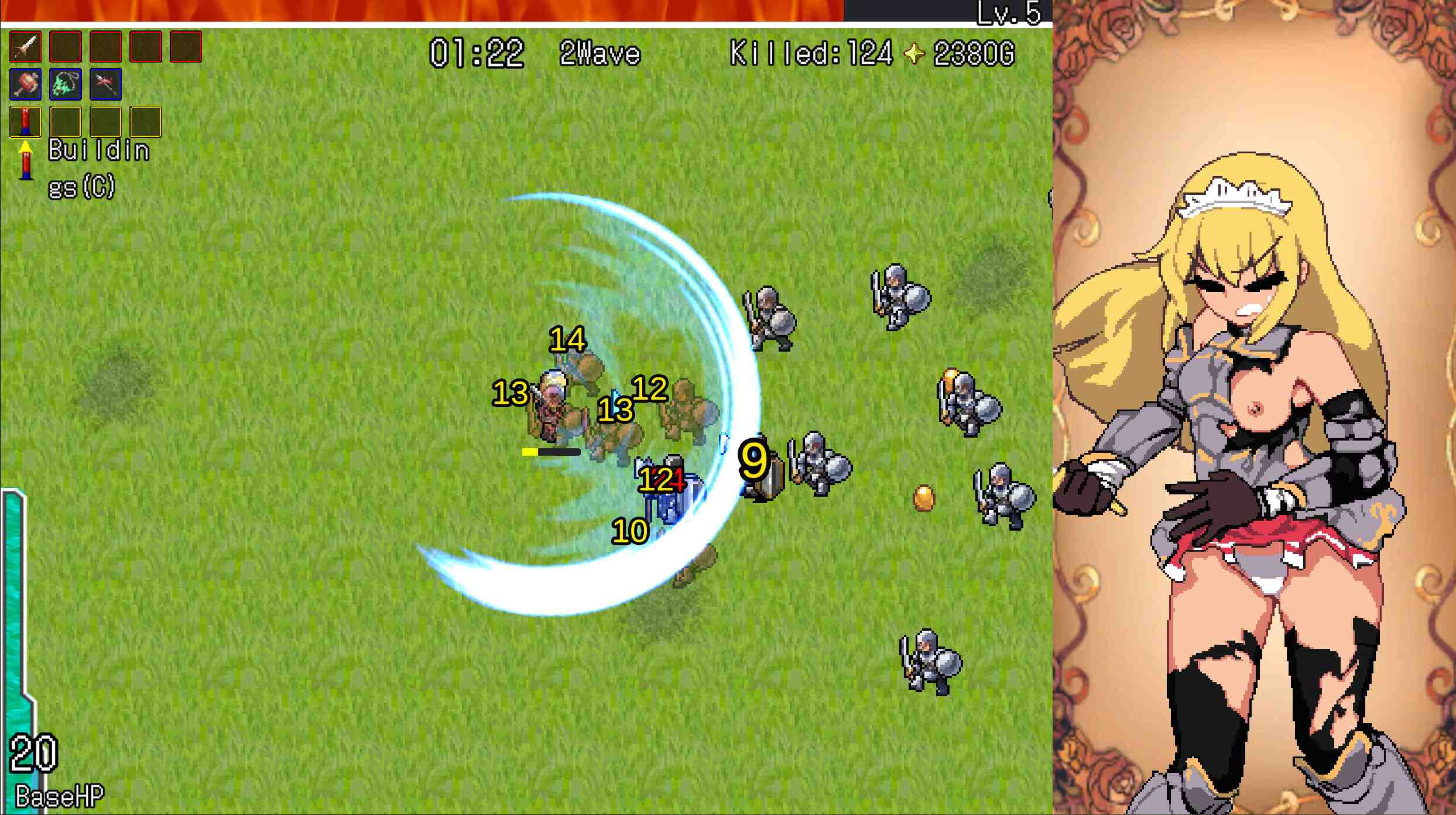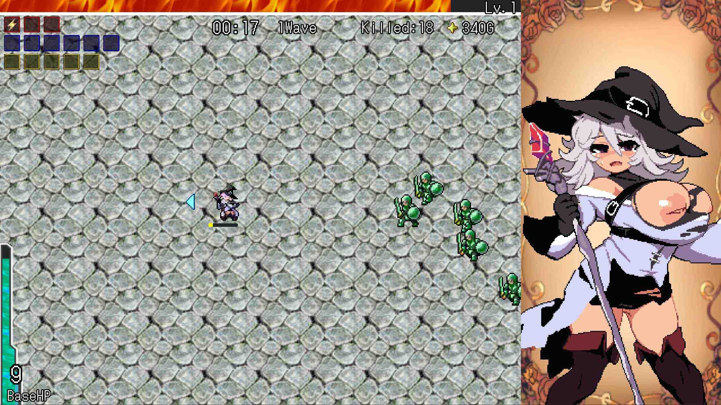 Glory & Miserable Survivors DX Female heroines shall take on a thousand enemies that dare charge their bases! An adult battle game with unparalleled action! These brazen babes possess the power and skills to a crush anyone who’s got the balls to attack. Even in the face of countless enemies, one woman stands strong. Unfortunately, what waits for our courageous heroine is not a glorious victory… but a future of despair. A diverse array of weapons, accessories, and buildings. Upgrade yourself and your structures to the point that enemies are eliminated in seconds. All characters have amazing animations. Exquisite pixepixel art and sex animations provide a sumptuous feast for your senses and soul. A large swath of enemies will charge in from the right over the period of 20 rounds. Base HP will be lost when they reach the left side. When either the base’s or character’s HP reaches 0, the game ends.