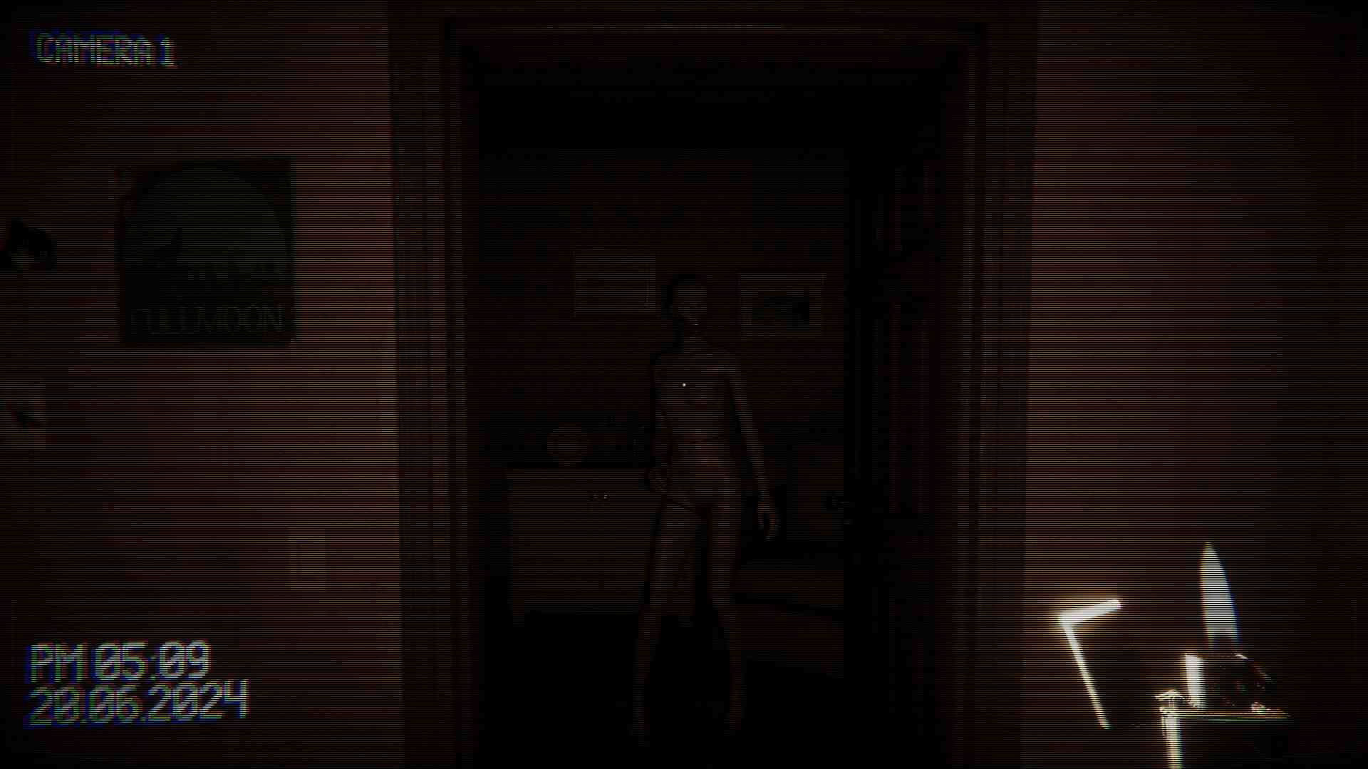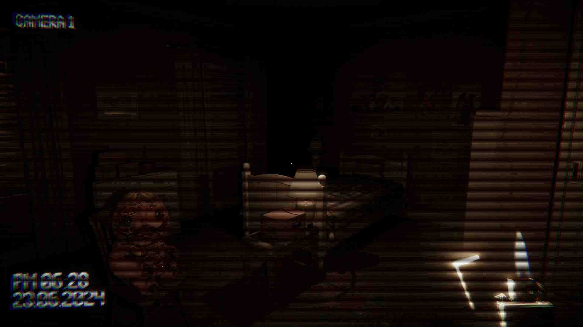Depending on how much you play this genre, you’ll instantly recognize the house and its layout. It has been seen before, which means it is either a free or really popular asset. That doesn’t matter if you’re new to this. A lot also hinges on how well the game incorporates its own unique touch. Camera view might be considered one of those. Besides the flashing “camera” word that might become annoying after a while, there’s also a cool time and date in the lower corner that show your exact time. It’s a small detail that adds a lot to the experience. Progress through the house is linear. This means you need to examine something or go somewhere to trigger a sound or event. Most common are mannequins and an ugly mutant baby showing up and disappearing as you walk around. There are only a couple of jumpscares that are thrown into your face. The atmosphere is built more on sound and unusual noises.
