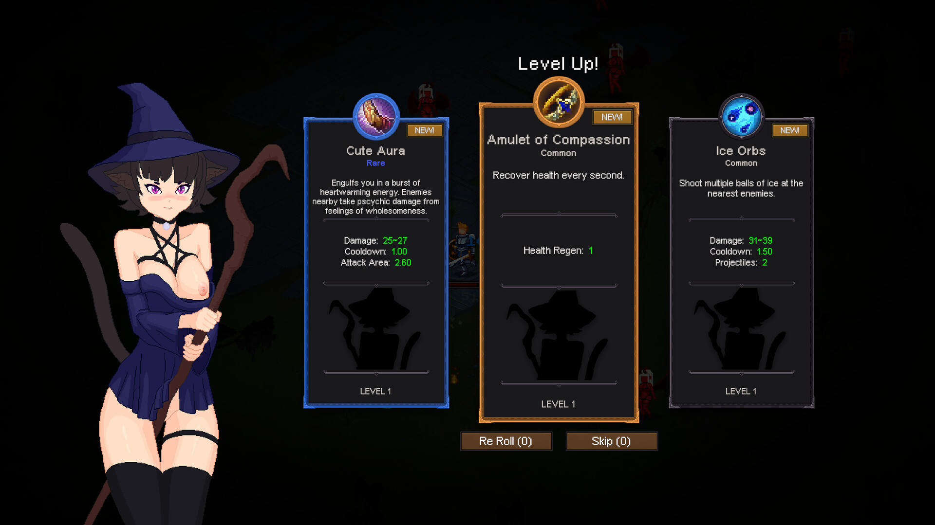 Harem of Gods is an action roguelite that sees you, the unlikely hero, face off against the hordes of evil with help from beautiful gods. Plan your item builds, progress your relationships, and massacre the enemies that stand against you. As you conquer evil, you form a harem with the gods. The more justice you serve, the more they want to give you special lewd rewards! An ancient evil has decimated the overworld. But it’s not too late to go back. Our hero has been given the curse of undying. His mistake unleashed the spirit of hell that now ravages the earth. Every run you dedicate your skills towards one of the gods. Stay alive,