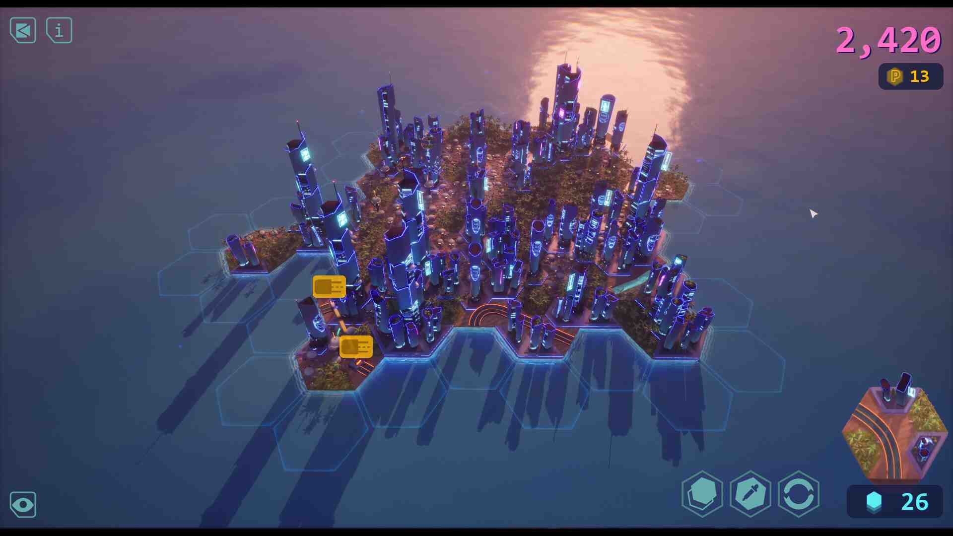 The music is incredibly good. Absolutely loved every track. Some reminded more of Blade Runner-y style songs to some that even gave me a Cowboy Bebop flair. All of it, super good. I really love the outrun, cyberpunk-y graphics of the tiles. Even the water and sun are beautiful as a backdrop. I love how you can zoom in and angle the camera so you can get a great look at the cityscape. For those looking for less of a challenge and an even more chill experience, there is a creative mode where you have free reign of your city and tiles. You can make some gorgeous views! I was able to play this on my Steam Deck without messing with any settings and it worked great. After an incredibly long session on the same map, I did experience some frame drops at max quality, but dropping the graphics to medium solved any lag.