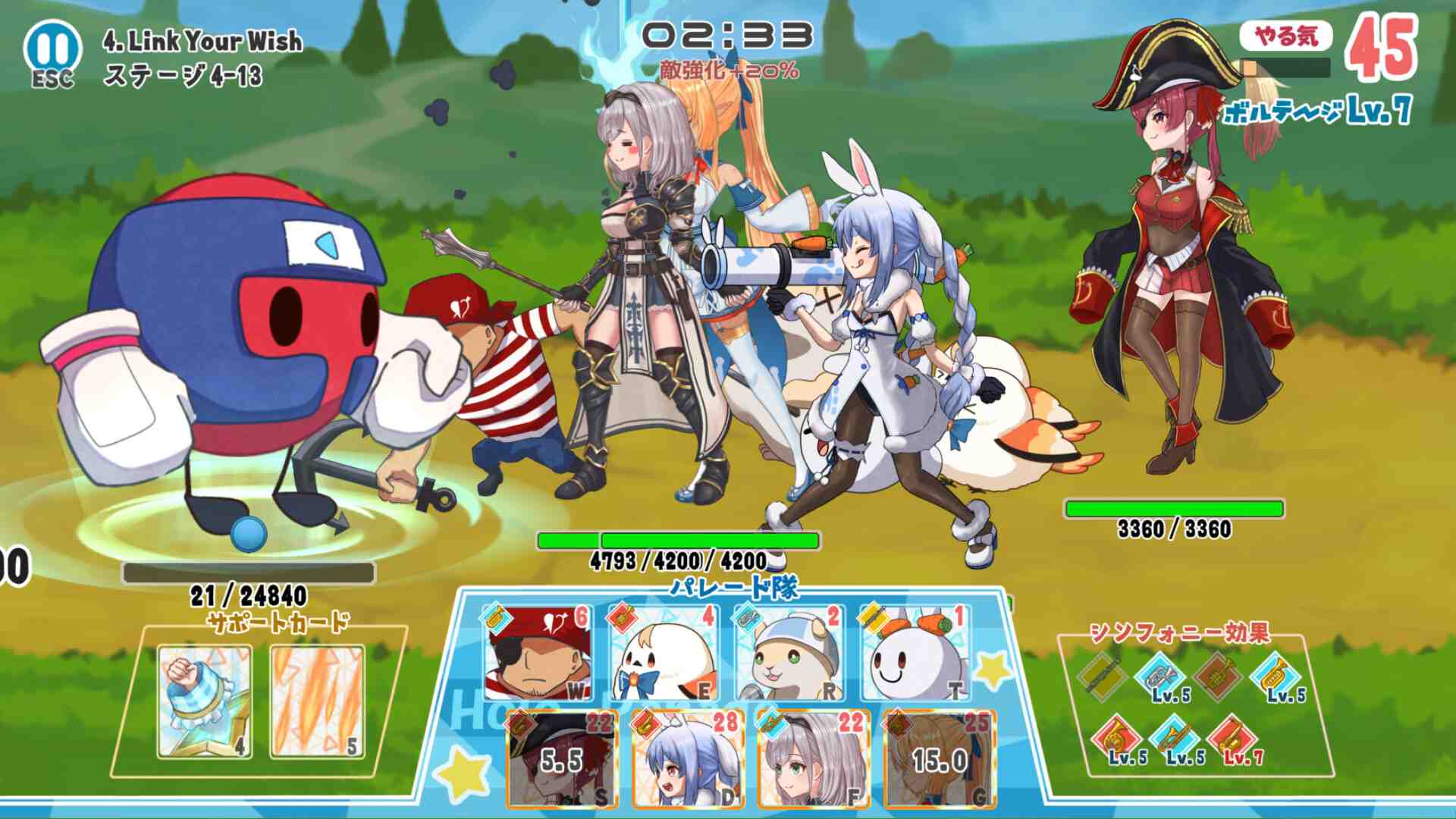The upgrades you can have in the game across runs basically increase your build possibilities exponentially, and most of the strategic unlocks are kept behind “quests” rather than a simple currency. The characters are meaningful, and the new cards you can unlock motivate you to try new builds in your future runs. the game do not feel great, and I couldn’t find a way to create a strategy that is built around active abilities than rather boring passive defenses, the towers. Given that endless is about as hard as the game gets this is immensely disappointing and a blemish on an other wise good auto game. Additionally, there’s an element inspired by parades called the ‘Symphony Effect,’ where various effects are activated based on the musical instruments played by the characters in march.