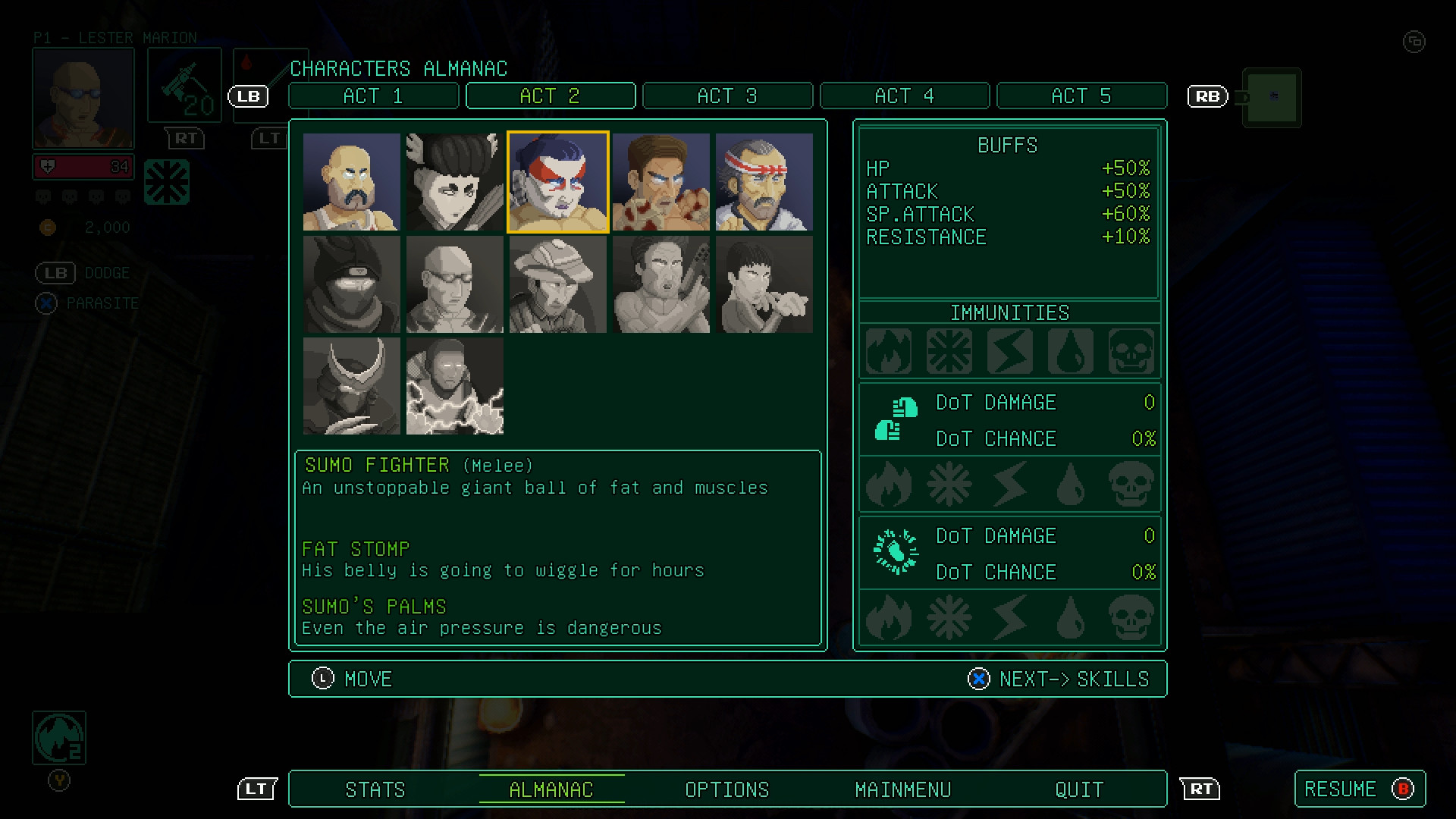 Feed the parasite with over 60 different characters, as you collect and control hosts, each with their own unique attack and smack-down. Hunt down the host class boss, rip their brain off (they didn´t use it anyway), and take it back to Wito’s, our ever-greedy shopkeeper. Using some very weird machinery to store the brain, you can then unlock the character with your hard stolen cash. There’s even a storage unit for your already collected hosts to come back to in later games. Since the game is procedurally generated, nobody knows what’s waiting around the next dark corner. Can you survive the 5 Acts of this grungy-looking synthwave-filled world? Maybe yes, if you remember that what lies in the shadows is essential, as there are secrets within secrets to explore within its roguelite mapping system. And if you keep a tentacle out for the bosses, as they pack one mean punch!