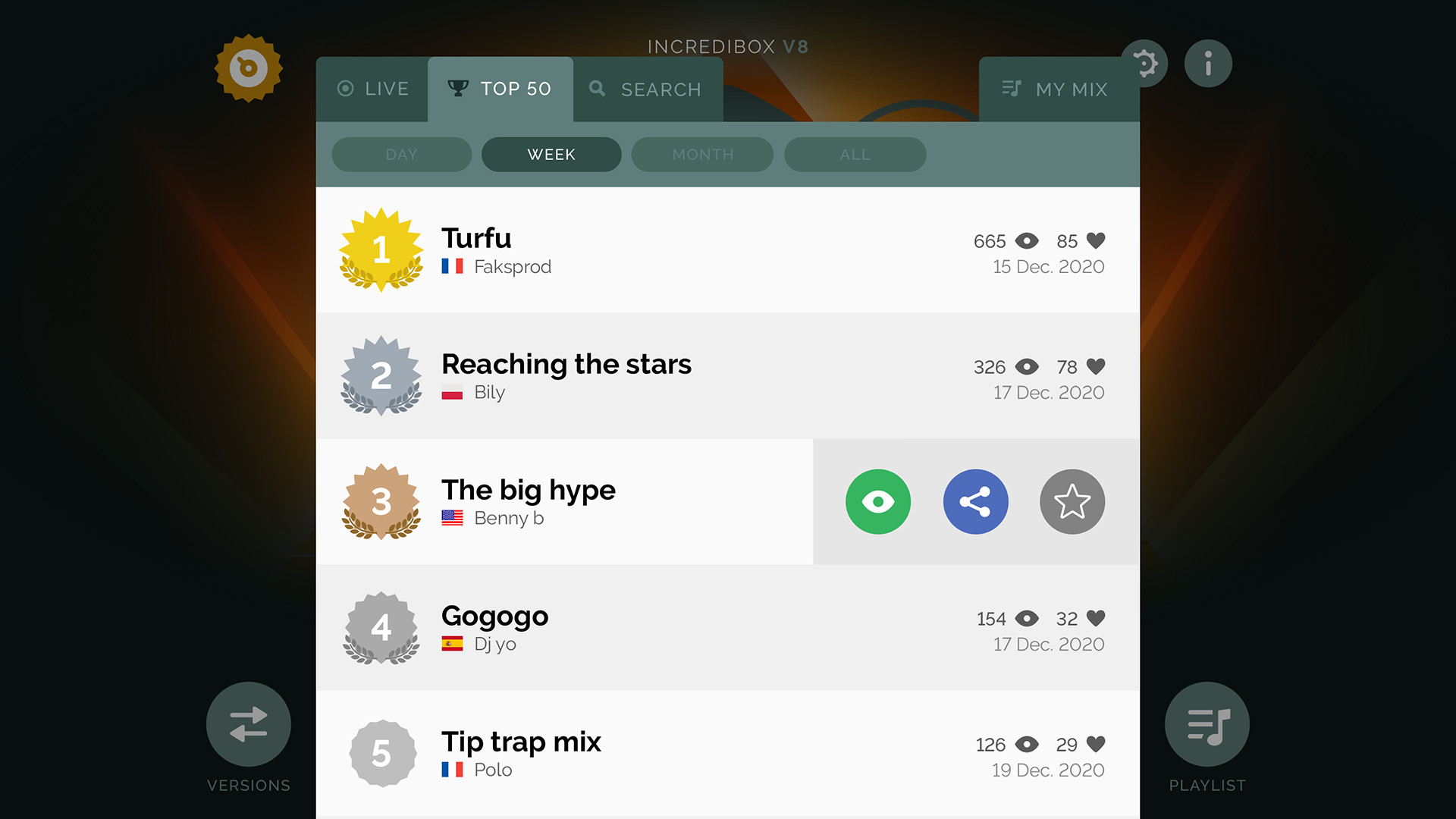 Incredibox is a music game that lets you create your own music with the help of a merry crew of beatboxers. Choose your musical style among 8 impressive atmospheres and start to lay down, record and share your mix. Part game, part tool, Incredibox is above all an audio and visual experience that has quickly become a hit with people of all ages. The right mix of music, graphics, animation and interactivity makes Incredibox ideal for everyone. And because it makes learning fun and entertaining, Incredibox is now being used by schools all over the world. How to play? Easy! Drag and drop icons onto the avatars to make them sing and start to compose your own music. Find the right sound combos to unlock animated choruses that will enhance your tune. Save, share and download your mix! Once your composition sounds great, just save it and you will get a link to your mix. You can easily share it with anybody so they can listen and even vote for it. If your mix sounds great and gets enough votes from other users, you may go down in Incredibox history by joining the Top 50 chart. Ready to show your stuff.