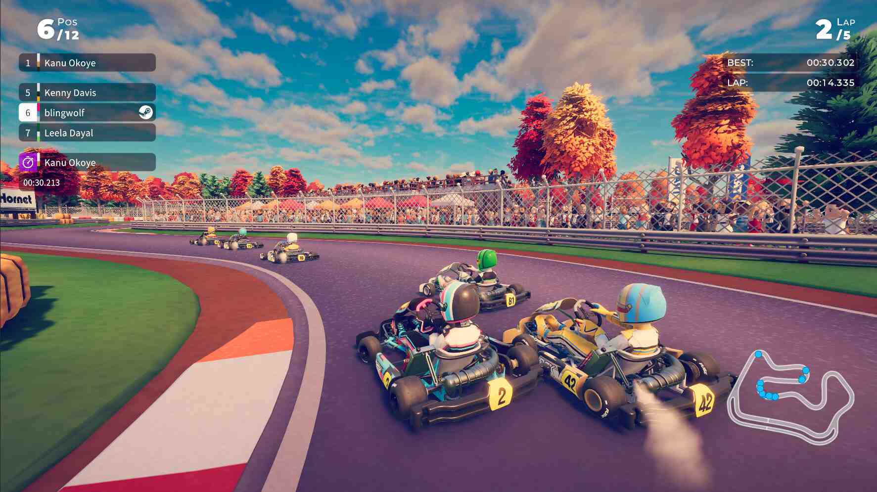 The driving is probably more accessible than Circuit Superstars and the change to chase cam might be preferred by some (subjective). With great concentration It is still possible to make the difference as a driver. The update rate of the development team (OFG) has so far been excellent, quickly fixing bugs and updating the core experience. They are first and foremost a lovely bunch of people who try to listen to the community. As it is early access there are still areas to improve, some of which I will list below. But if you want a jump in and play karting experience that offers a great driving experience I have no qualms recommending this. However, despite it being early access I’ve already enjoyed nearly 30hrs in the game and don’t see the novelty wearing thin any time soon. Still loving seeing some of the old revamped tracks in a new perspective!