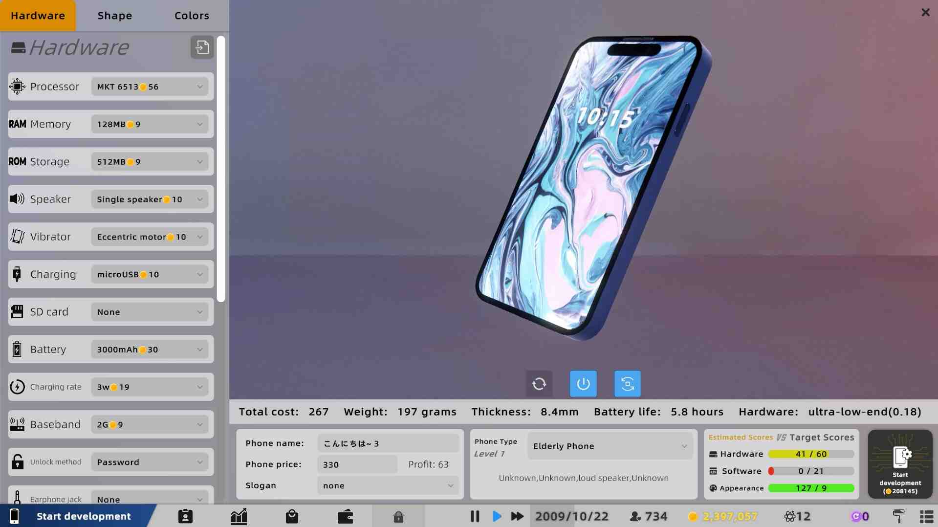 Carefully design could not win you sales without marketing. You can customize your slogan, hold product launch, place various advertisements, even attack competitors, etc., and use all available means to win this business war! Just be careful not to spend money too willfully and cause yourself to go bankrupt… The game provides a wealth of industrial information and product data for players to keep abreast of market conditions at any time. You can use them wisely to establish new advantages. The game provides players with a comprehensive phone design page where they can customize every aspect of their device, from appearance like size, colour, material and camera, to hardware like processor, storage and battery. Dozens of options in total, all can be adjusted in detail, ensuring that you can create any phone you imagine!