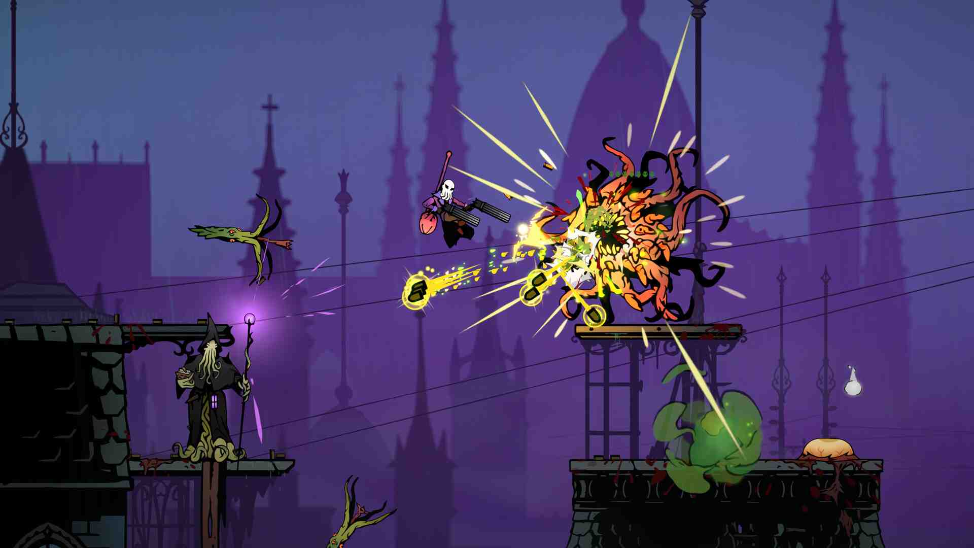 There are some ‘risk vs rewards elements’, but they are a bit hidden, you can enter various doors that are blended into the background to find all kinds of shops or treasures. I didn’t see any “multi-phased boss battles”, maybe you referring to some new attacks they start doing later, but to me, that means something different, like an actual new fight with the boss. There are 4 zones right now, about 10 to 15 minutes each, and you can navigate them by choosing different nodes that provide various bonuses or resources. If you get good at the game probably 30-40 minutes runs, which is fine for a rogue-lite, would be nice to have 6 zones in total by the end. The locations are similar to a game like Revita, they are small arenas instead of big levels, so you just kill a few enemy waves, aside from fighting optional bosses.