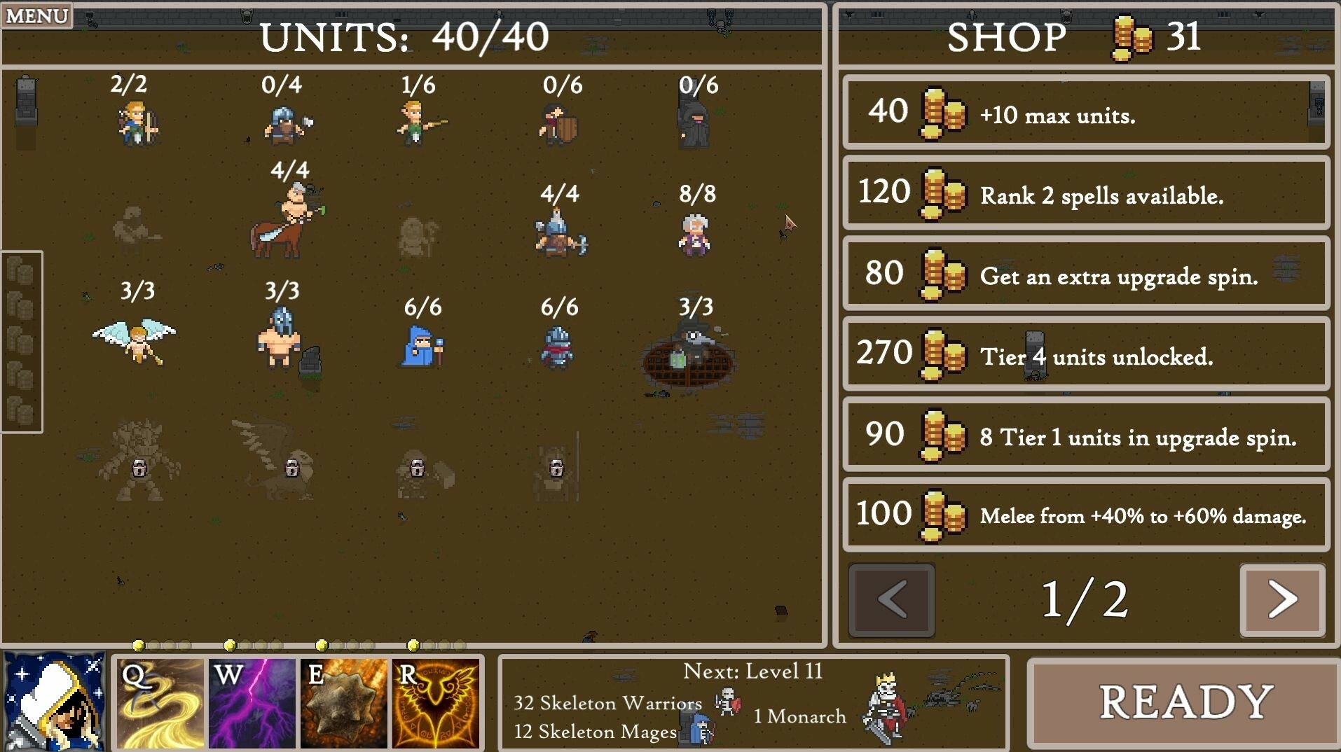The gameplay is perfectly on point. Kudos to the few sound effects. My wife turned when I started wiped swarms of the green monsters (and I’ve been slaughtering them as audibly as possible ever since, to catch her attention : Graphics have a 90s feel (or poor student project feel). Personally, I almost ran away after seeing some menu screenshots with blurry pixel art, typical sign of the $1 scam games that plague Steam. Make no mistake, it’s a real game, it’s great, the UI is optimized and very-well animated if a bit “raw”. There’s a variety of units, spells and strategies to try. Expect to see pretty much everything within 10 hours. Replayability is limited. The game has extra difficulty levels and adjustable modifiers (health/damages/range/etc…). You could stretch the playtime if you’re a completionist but it will get really repetitive. There’s ample room for new game modes to be added, ascension, campaign, sandbox, daily challenges.