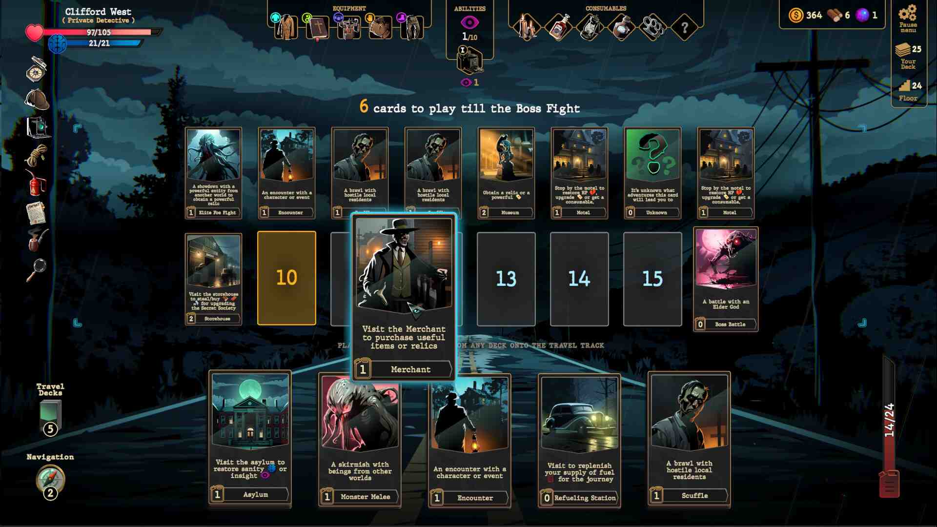 Looks good so far, all the mechanics are familiar for deckbuilder roguelikes. Interesting system to choose encounters via cards. “Tutorial” should have been shown step by step while playing the first turns, instead of just a wall of text as the first thing a player sees. Also dragging cards needs to be too accurately targeted, which is quite annoying. E.g. self cast cards still need to be dragged exactly onto the player, even though there’s no possible other target. As a fan of Lovecraftian horror and anything published for Arkham Horror, this game makes me happy. They’ve done such a good job with the setting. I love it. It’s worth it just for the overall experience.
