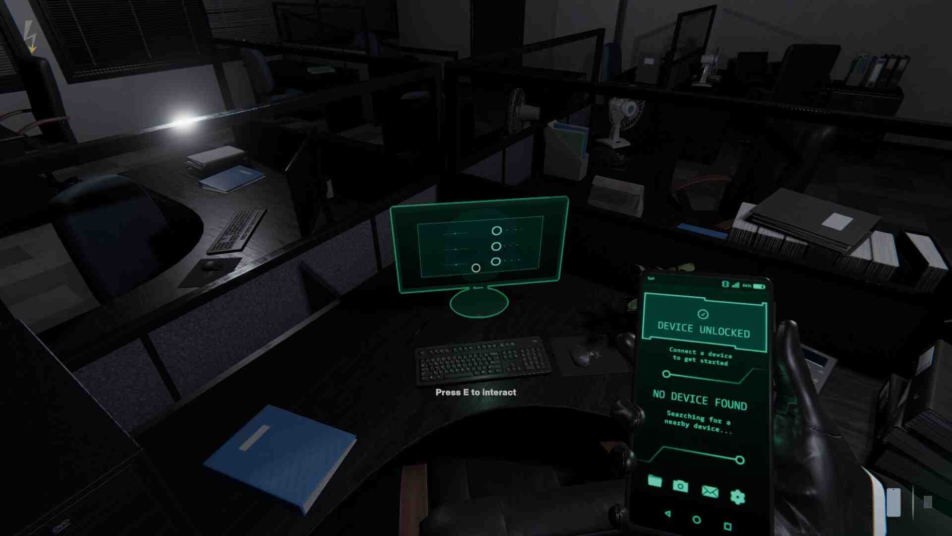 Midnight Heist is a co-op horror where you go on a heist through Midnight City alone or with up to three friends. As a relatively inexperienced hacker, you get the chance to perform tasks for well-known organizations. If you manage to complete these tasks, your reputation will increase and you will be trusted, while you will be rewarded. However, pay close attention to who hires you. The tasks will not be without danger. It is rumored that especially at midnight strange shadows move through the office buildings. According to reports, strange figures roam around various companies from midnight onwards. We’re not sure what exactly is meant by these figures, but be on the lookout for danger in any case. Try to leave as few traces as possible, complete your task and escape. You can break into the companies with up to three more companions and distribute the tasks to grab even bigger rewards. However, keep in mind that more thieves means more attention. After receiving a job, you will have to break into a company. Depending on the job, you’ll have a variety of tasks.