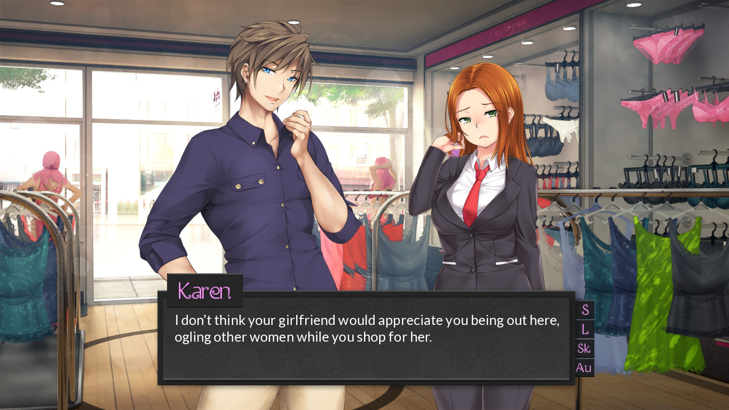 Negligee Love Stories In the first story we follow Karen as the games protagonist. After living in an emotionally abusive marriage she turns to a new friend for comfort and gets more than she bargained for, but before long her secret affair helps her to realise that she should leave her husband and start over. How will this story play out and the eventual confrontation with her husband. You decide in this visual novel tale with multiple endings. In the second story we follow Jasmin as the games protagonist. Jasmin is unsure of her place in the world, working as a Stripper she is unsure if she should continue within the world of adult entertainment or take stock of her life and move on. Before she can make a decision though her boss offers her work that sounds to good to be true, will these new offers open her eyes to a better life or help her to finally move on, you will decide in this story with multiple endings.