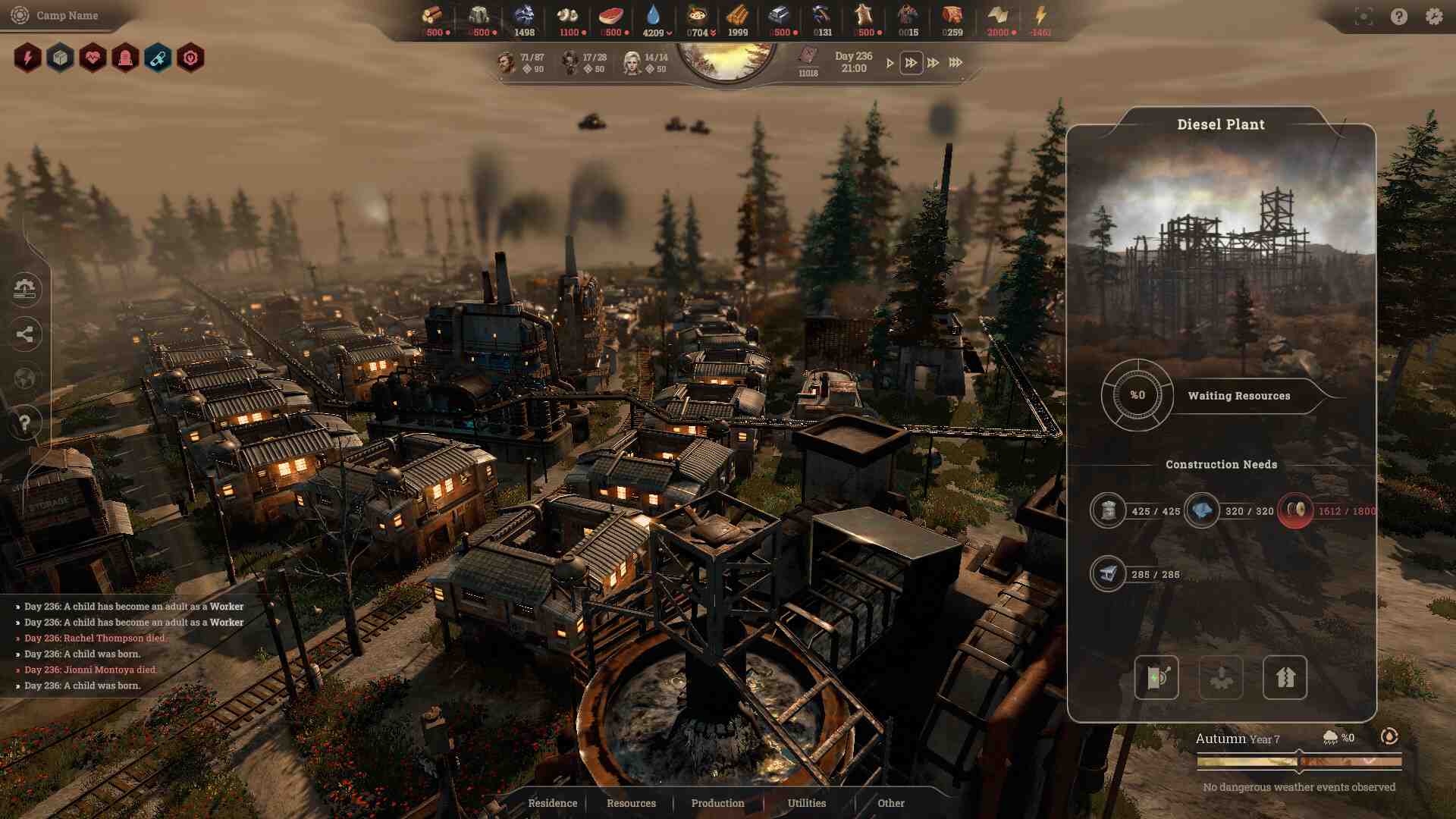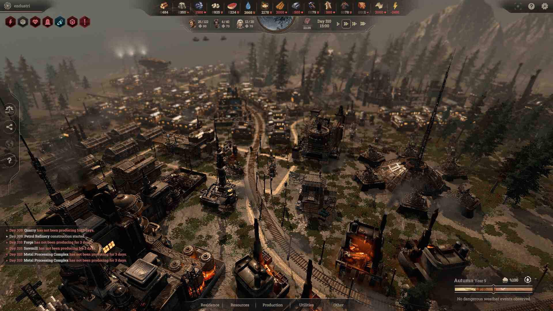 Take care of your people’s basic needs. Distribute food, water, tools and clothes and regulate their daily work schedule. Enrich their life with entertainment, prevent diseases and improve your people’s health by providing medical facilities. With every new member of your community you get closer to re-discovering the forgotten technologies of the old world. As your settlement develops into an industrial city, running on fuel and burning coal, a whole new level of productivity opens up to you. Mass-production, automation, factories feeding factories via complex systems of conveyor belts. Modernize your workforce by training your people in these specialized tasks. Each era has the potential to improve your production as well as the lives of your people, giving you access to numerous new buildings. As your settlement develops into an industrial city, running on fuel and burning coal, a whole new level of productivity opens up to you.