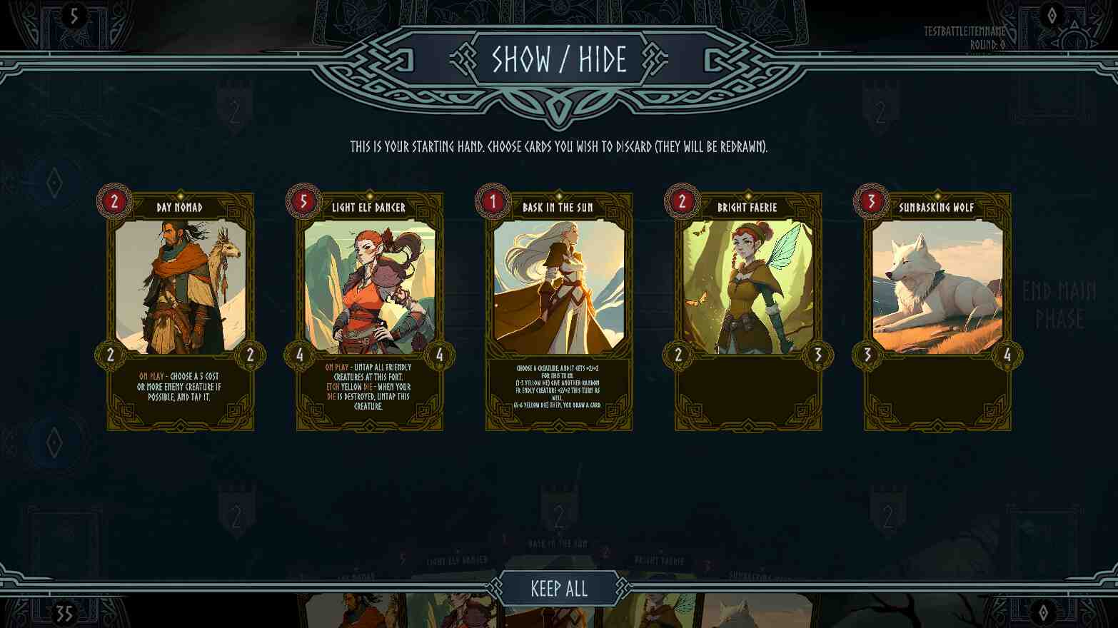 Save the Nine Realms in this Deckbuilding Adventure. Ragnarok has occurred and destroyed the old gods. As the survivors struggle to rebuild, Revna the fire giant has seized control of Asgard. Embark on an adventure to unite the realms and put a stop to his reign in this unique deckbuilding oddyssey. Make alliances, grow powerful, and discover what lies within each battle. You play as Fjolnir, a young light elf living on the remains of Alfheim. After his village is burned down by Revna the fire giant, you embark on a journey to put a stop to Revna, but traveling to the different realms and recruiting allies to aid you in your quest. Fight through the hellscape of musphelheim, Wander the forests of Vanaheim, Explore the now flooded midgard aboard a runeship, Escape from the crumbling Hellheim, and topple Revna off his new found throne in Asgard. A blend of old school card games like mtg and dice mechanics gives Nine Realms Revolt a unique spin on the deckbuilding genre. Craft a deck of at least 40 cards by using 3 of the 5 factions.