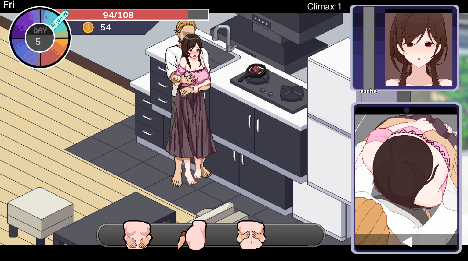A massive chest, thicc hips, a shy innocent smile – how did that loser ever marry such a babe? You hatched a plan; you were going to do what you did to all of your previous beautiful tenants; you were going to have some “fun”. The artwork is phenomenal, we can start right there. Animations, images, hell even the pixel art has sensuality to it. The game is good, it’s very very good. There is some qualms about confusion and minigames. A task book would not be out of place, however I can also understand a desire to go without. The story is a standard fair, but with an addition of some enjoyable characterization and twists. You see the interactions between your neighbors, and even inner thoughts that provide more depth to the actions your character is taking. Voiced, animated, all the above.