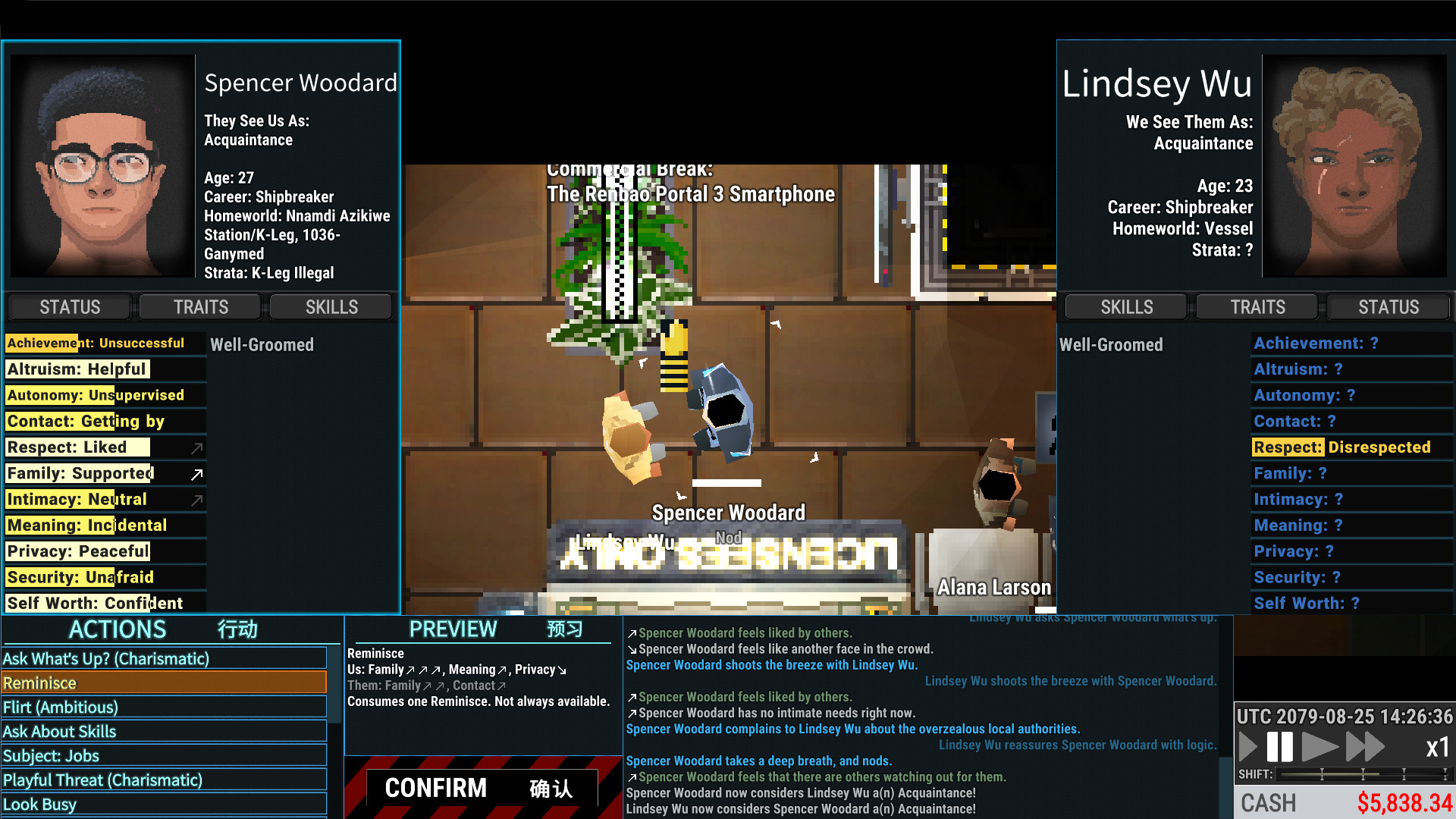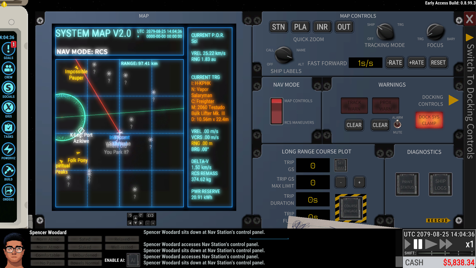 Each character you encounter runs an AI that is constantly making choices based on their current needs and past experience. They have physiological and emotional needs, ranging from basal needs like food, water, oxygen, and temperature, to more esoteric needs like privacy, security, intimacy, and esteem. You have social moves that can affect others’ moods such as intimidation and flirting. Your own character creation affects which responses you have available during your interactions. Before hiring them as crew, you must build a connection with other characters. Ostranauts is rich with lore for those who want to seek it. Colonies and factions have long histories. In this universe, human civilization has expanded into the solar system, inhabiting many of the planets, moons, and asteroids. However, the collapse of civilization on Earth, coupled with the ablation cascade in orbit, has rendered Earth unreachable. Those colonies unable to adapt withered and died. The rest formed the collection of states, corporations, and factions of the System. Unexplained phenomena have rumors echoing through media and hidden files.